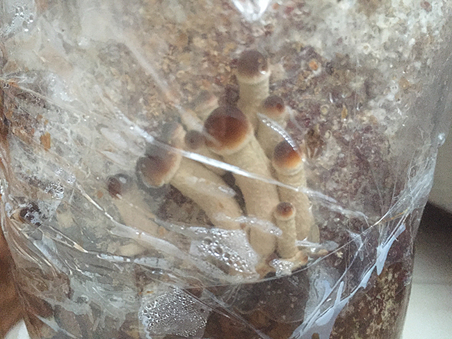 Ich habs mit Folie eigepackt, damit es die Pilzchen schön dunkel haben.