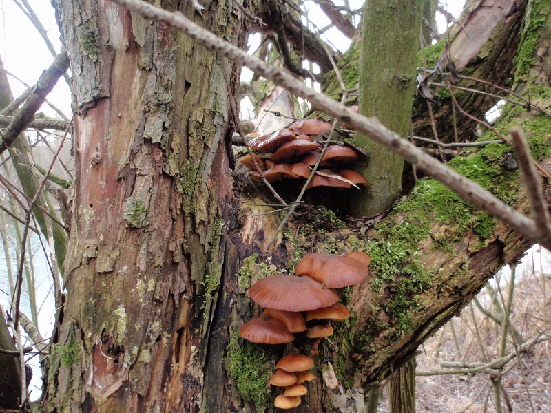 Ich habe mir heute ein mir unbekanntes Gebiet angesehen und anfangs lief es noch sehr schleppend. Wo die Biber den Weiden zuleibe gerückt sind fand ich zwar alle paar Meter Samtfüße, jedoch meist nur kleine oder winzige und auch nur immer sehr wenige Fruchtkörper, dafür alle paar Meter wieder.