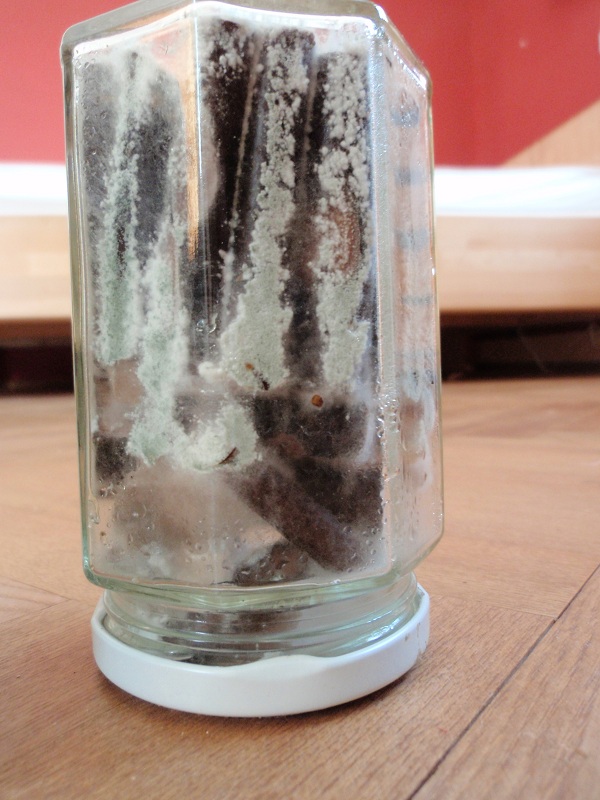 Selbst die beimpften Äste und Dübel sind schon sehr stark bewachsen, wenn auch noch sehr flaumig und dünn. Bin mir aber vom Wuchs her fast sicher, dass es sich um die Austern und nicht um Kontis handelt. Das Holz habe ich im Sud in dem ich Roggen gekocht hatte eingeweicht, was wohl die extreme Geschwindigkeit erklären sollte. Kontaminationsprobleme hatte ich kaum, bisher ist mir nur ein Austernglas verschimmelt.