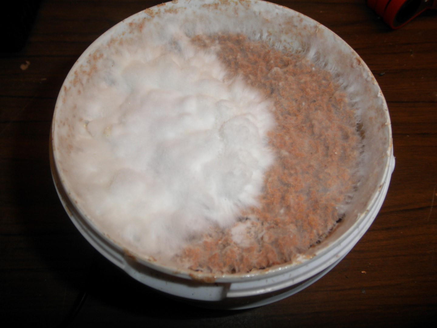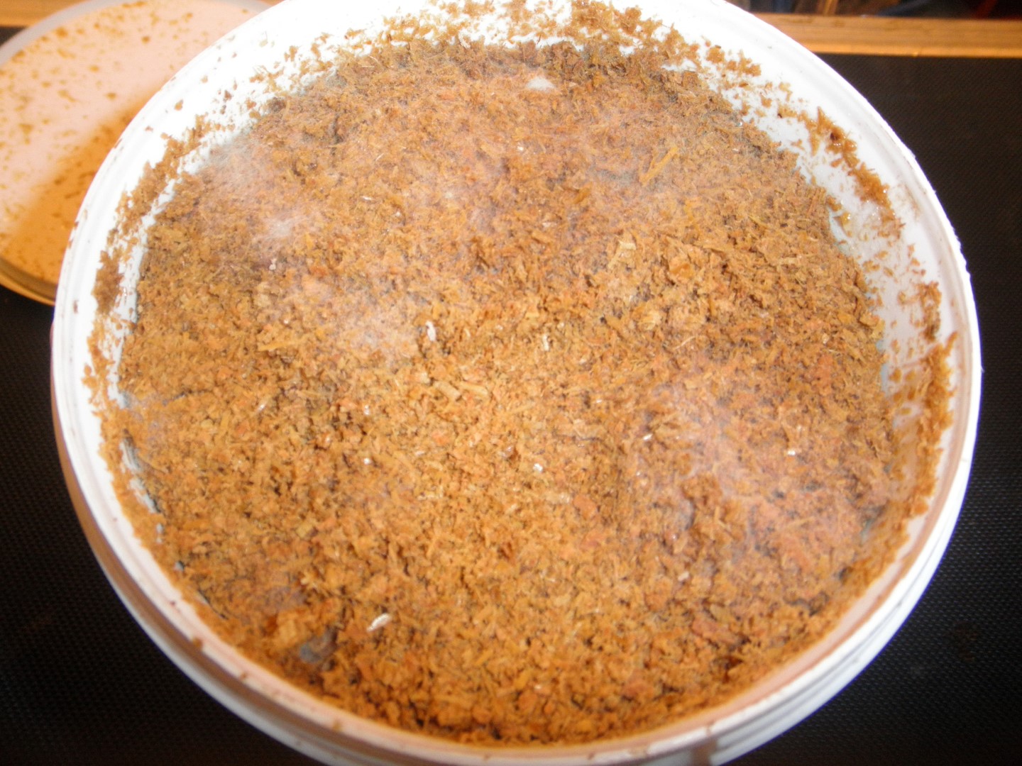 Ein paar alte Dübel ... ich vermute, die Mühe hättest du dir sparen können. Du brauchst frische Brut. Und die sollte man auch nicht zu sparsam verwenden. Es dürfen ruhig mehr als nur ein paar Körner pro Eimer sein.