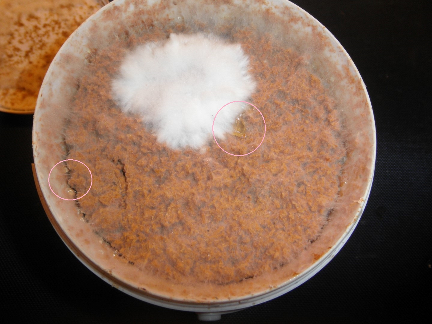 Diese gelb/organgenen Flüssigkeitsabsonderungen sind Metaboliten... hier auch Myzelpipi oder Myzelpisse genannt.