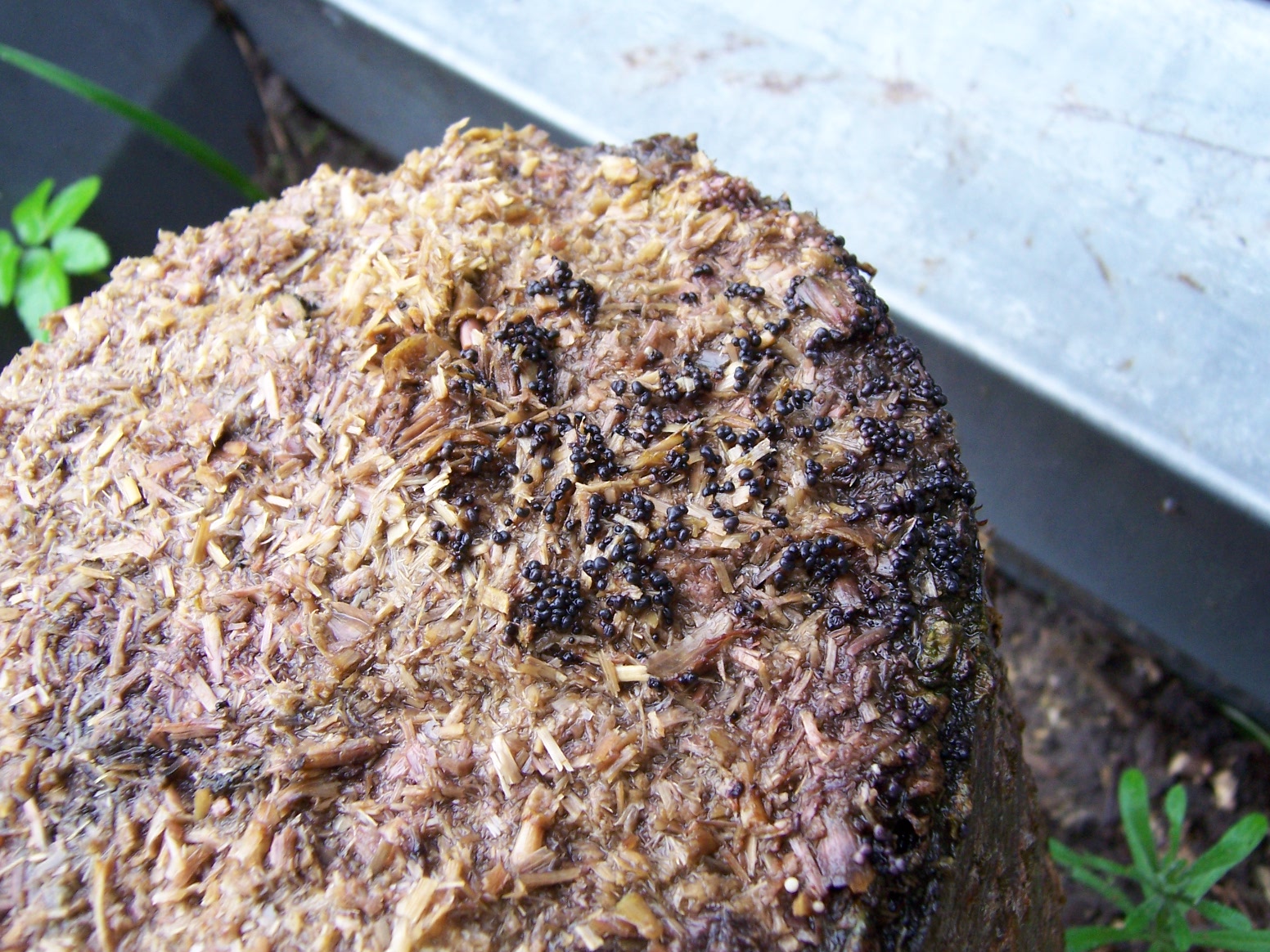 die Knubbel sind zwar Pilze, aber von einer anderen Art. Ich denke, die knabbern bloß an der Oberfläche oder leben von dem, was du dort draufgestreut hast. Sollten also nicht weiter tragisch sein. Deine Austern werden bestimmt noch kommen, kann aber noch ne Weile dauern.