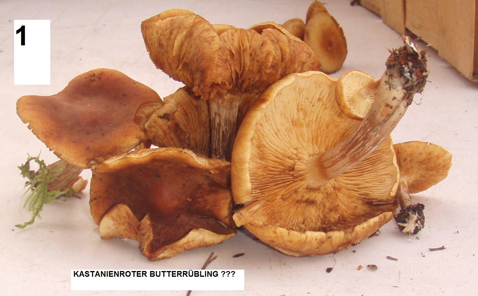 3. Unmittelbar neben 2.(Bilder 1 u. 2 ) Pilze sind bis zu 12cm im Durchmesser und bis zu 10cm hoch.Ältere Hüte völlig irregulär nach oben hochgebogen.Das größte (und wohl neu gewachsene Exemplar ) ist dagegen schirmartig-kugelig und farblich deutlich heller,eher als löwenbraun zu bezeichnen.Dachte an den Kastanienroten Butterrübling bin aber völlig unsicher.