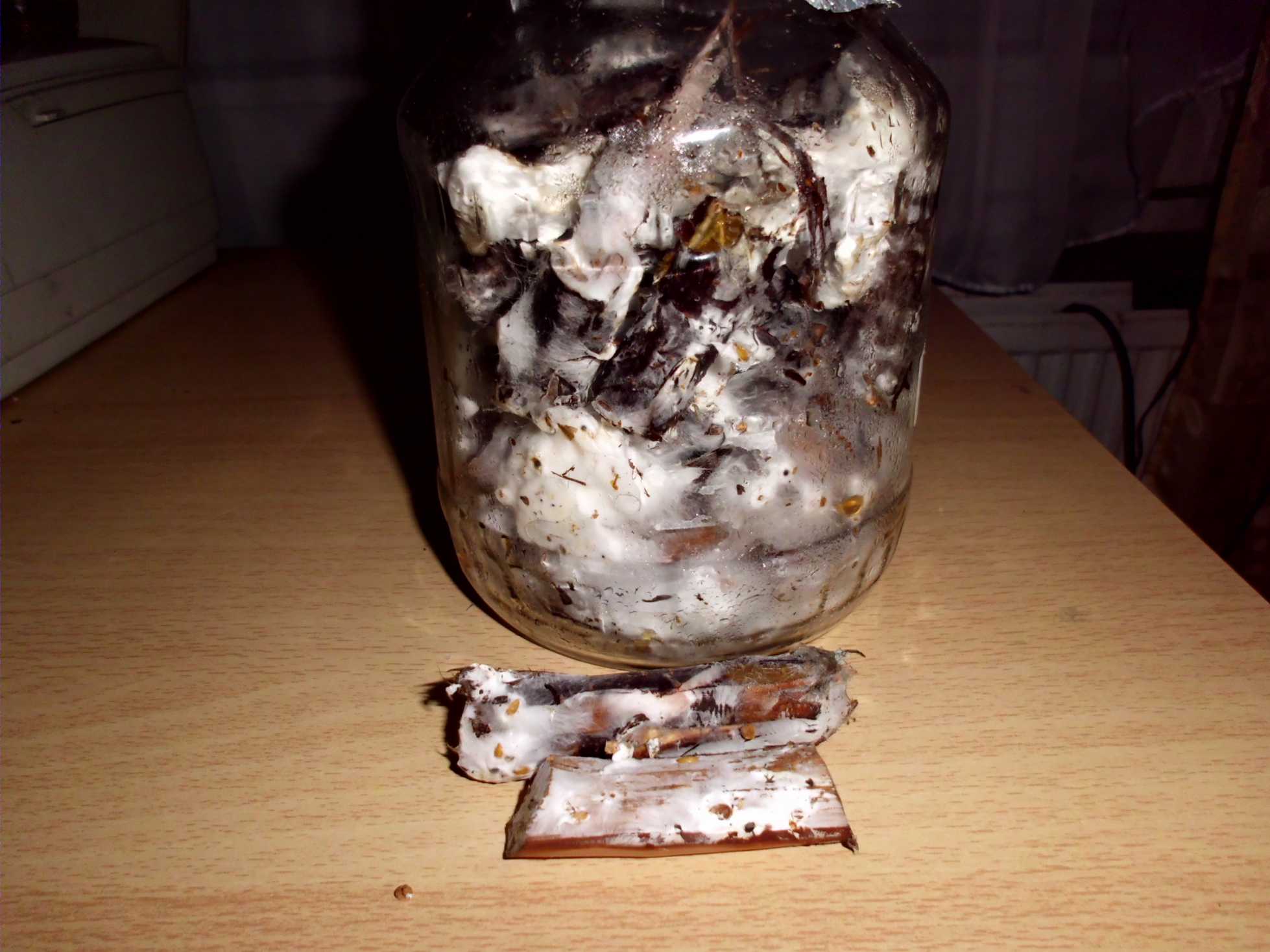 Nach Erkalten habe ich mit Körnerbrut vom Austernseitling geimpft.