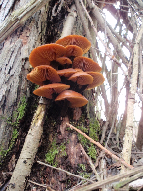 Gerade habe ich noch einen richtig schönen Samtfußrüblingsfund gemacht, welcher von der Wuchsform genau das ist was ich noch an Genetik wollte, neben der mit den großen Fruchtkörpern. Der zweite wuchs in großen, schönen Büscheln auf stehendem Eschentotholz von nur etwa 15cm Durchmesser an der Basis. Die Fruchtkörper fingen erst in etwa 3 Metern höhe an und wuchsen bis auf etwa 6 m Stammhöhe, was das ernten zu einer etwas nervigen angelegenheit gemacht hat. Zum Glück sind die Fruchtkörper so elastisch und überstehen das Runterfallen problemlos, und der "Haselnuss-Einweg-Pilzerntestab" hat sich mal wieder bezahlt gemacht. :lol: