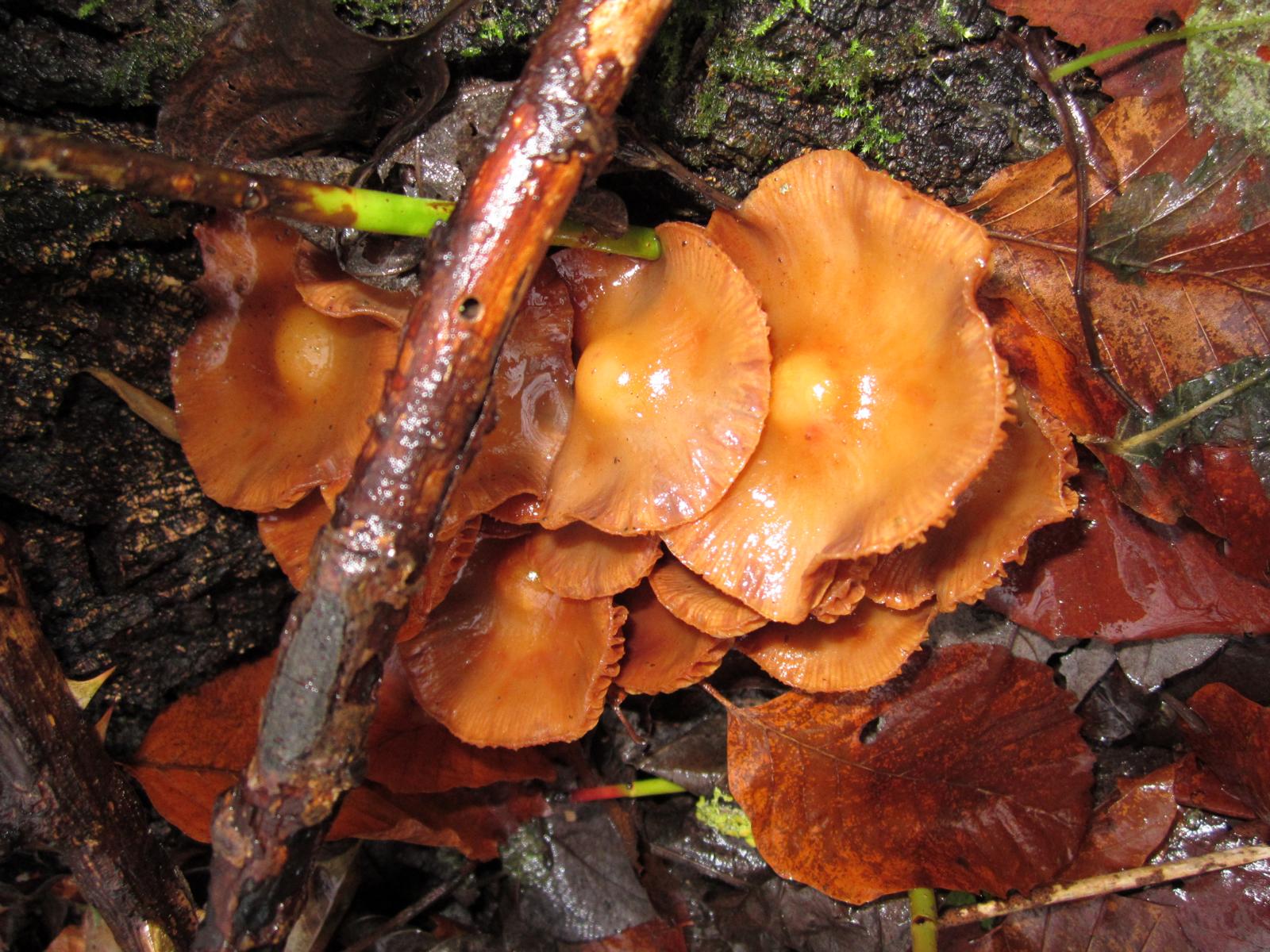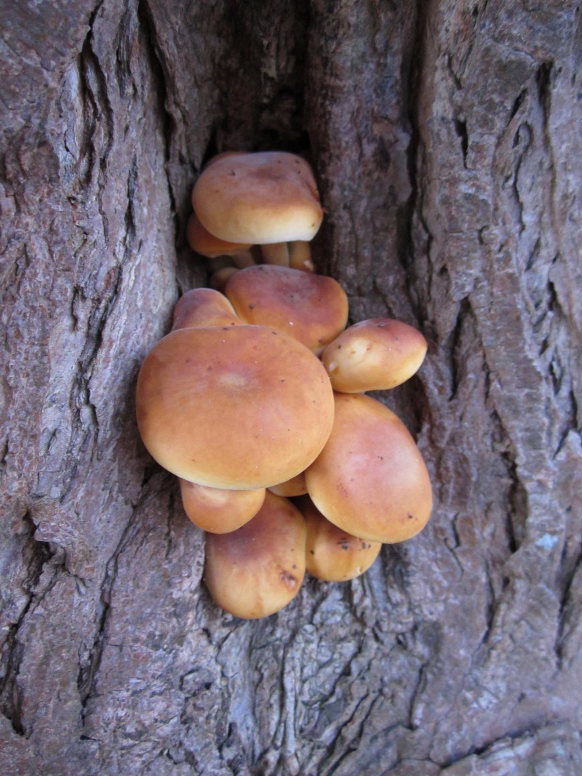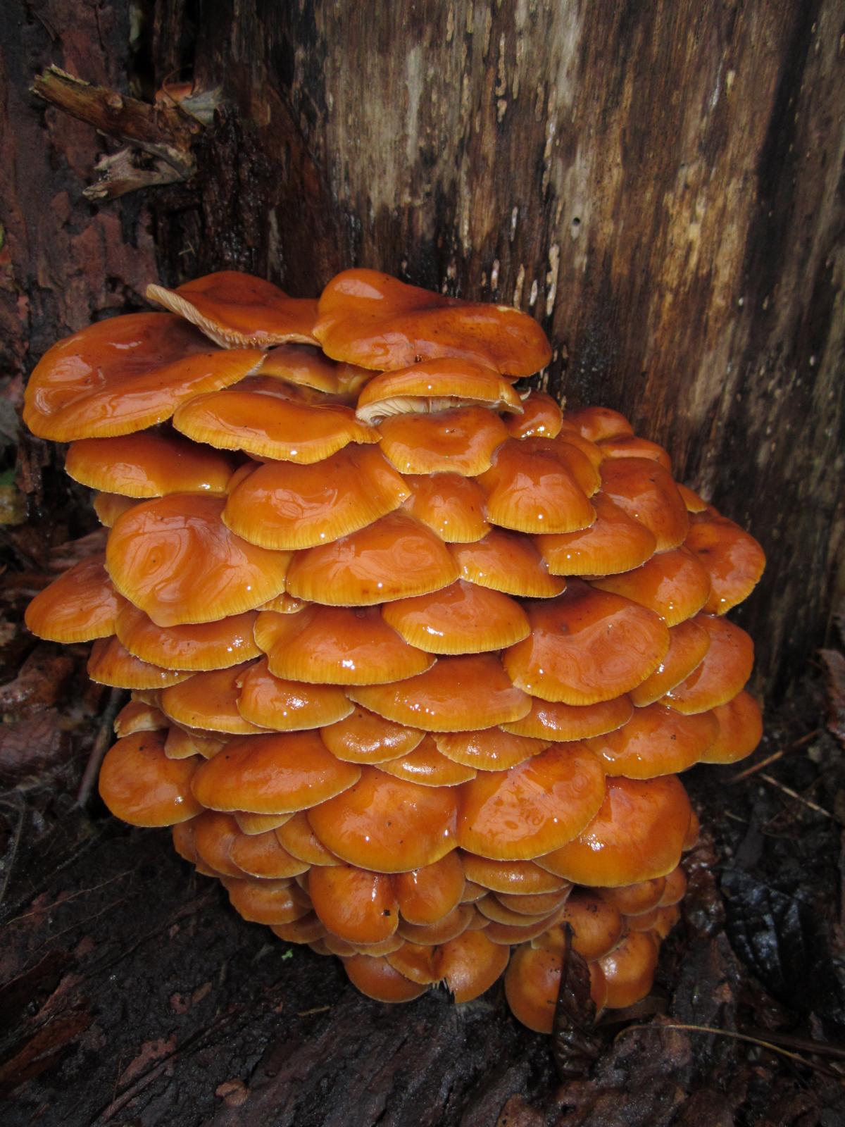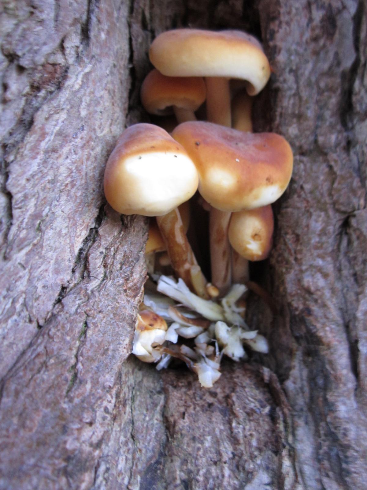 Wenn du dir mit dem Samtfußrübling so sicher bist glaube ich das natürlich zumal in der näheren Umgebung Samtfußrüblinge wachsen. Was mich nur iritiert ist die fehlende Schleimschicht und auch der samtige stielüberzug war kaum ausgeprägt und auch die übliche dunkelfärbung der Stielbasis fehlte und die hatten diese Merkmale auch noch nicht als ich ne Woche später da war. Außerdem war die Kappe auch leicht samtig überzogen. Woran liegt das? Weil sie an einem relativ intaktem Baum wachsen? in ca. 1,50 m Höhe? Oder an der Einbuchtung des Baumstammes?
