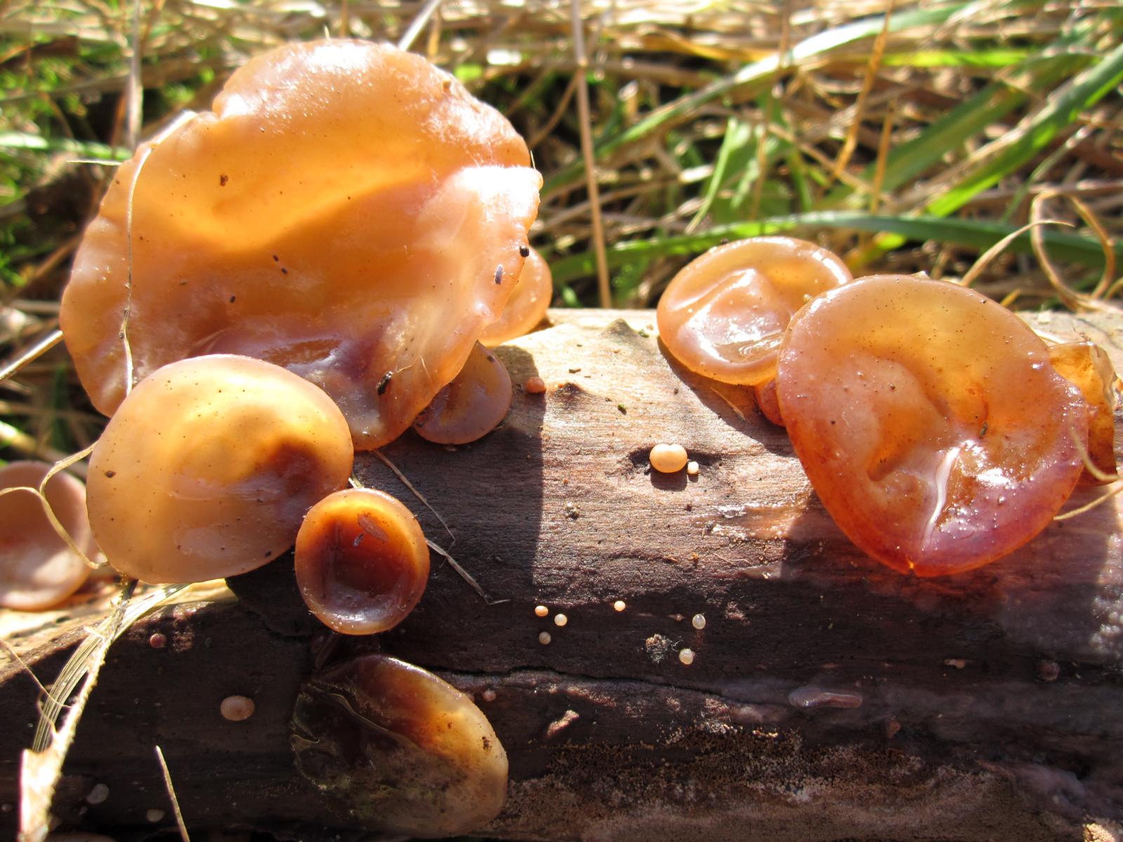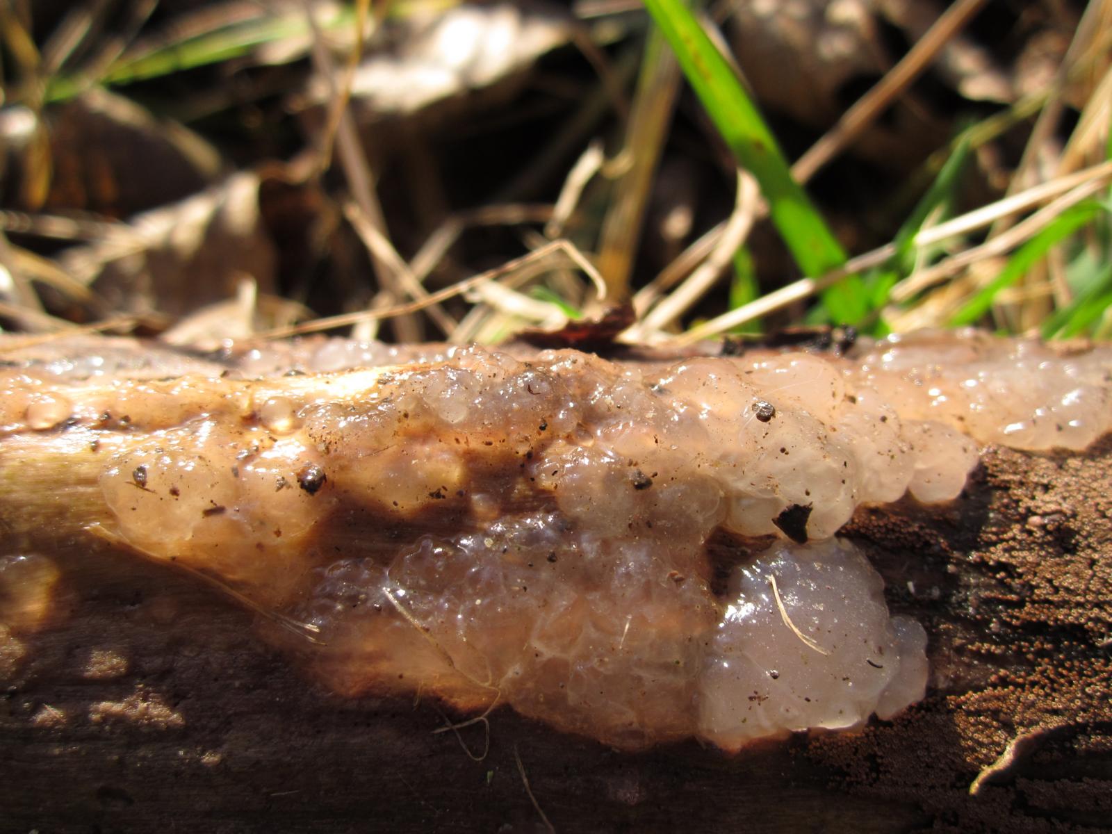 diese gallertartige masse war in einem bereich des baumstammes der von gras und erde bedeckt war und man sieht das gleiche auch auf dem ersten bild unmittelbar neben den fruchtkörpern unten rechts - der stammabschnitt war auch von gras überwuchert (Bild 1 und 2 sind vom selben baumstamm) und die Judasohren sind ja selbst recht gallertartig - daher meine Vermutung. Ich kann zwar schon relativ viele Pilze sicher bestimmen aber insgesamt ist mein Wissen diesbezüglich recht überschaubar.