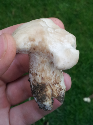 habe auf dem grundstück meines opas heute weiße pilze (siehe fotos) an mehreren hexenkreisen neben buchen und kastanien gefunden. Das fruchtfleisch ist relativ fest, leicht wachsartig, der Stiel ist relativ dick, innen kompakt (nicht hohl) und das Fleisch farblich nicht ganz homogen. Er duftet sehr aromatisch, etwas richtung pinselreiniger oder tanksstelle (benzol, xylol etc.), eine leichte note richtung Vanillin, Anis und Chamignon, ganz leicht scharf, insgesamt sehr angenehm.