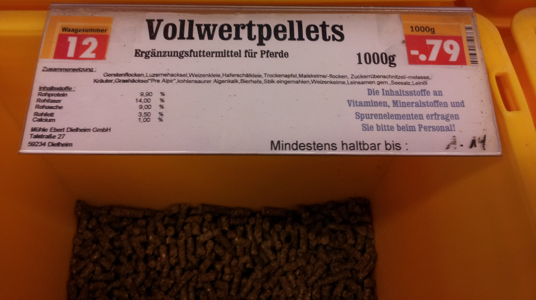 Habe heute in einem Zooladen "Vollwertpellets, Ergänzungsfutter für Pferde" entdeck.
