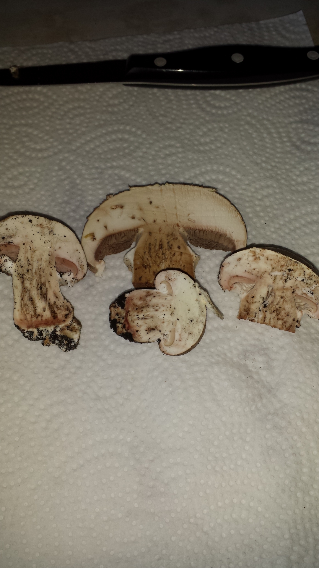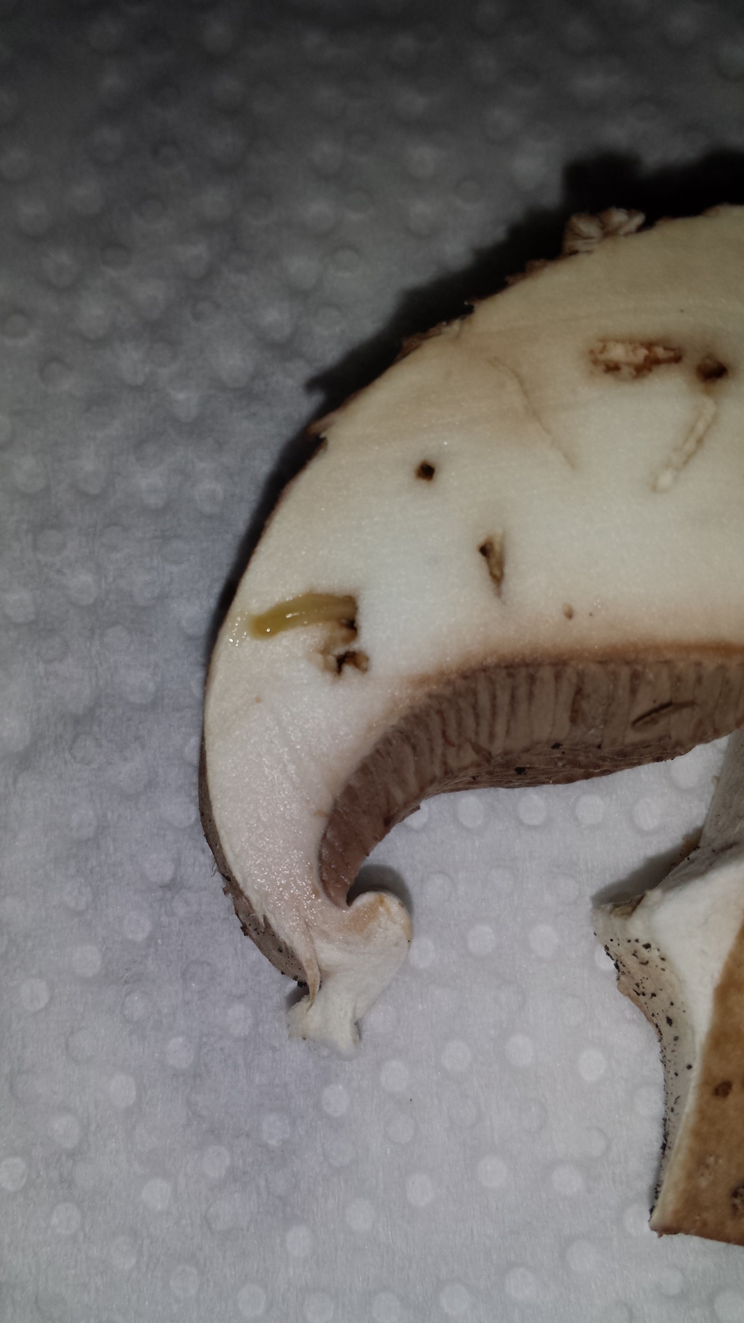 heute habe ich meine allererste Champignonernte eingebracht und mich schon total darauf gefreut, die heute abend auch essen zu können... Doch als ich die Pilze dann geputzt habe, sind mir im Inner der Pilze fraßspuren aufgefallen