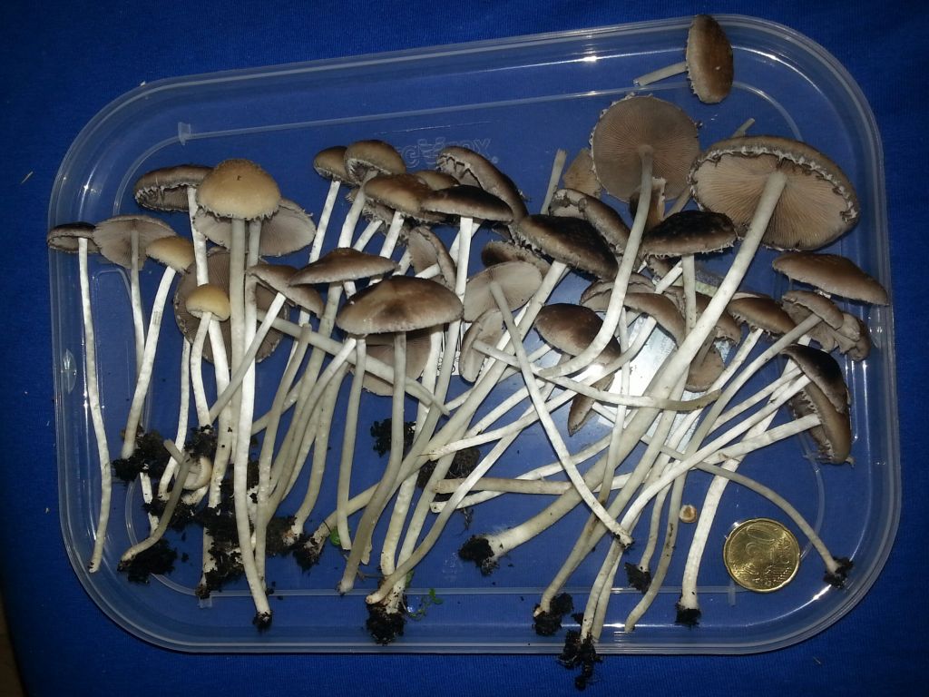 Und was für eine Menge und Art von organischem Material ist da drin, damit du dort so viele Pilze ernten kannst?
