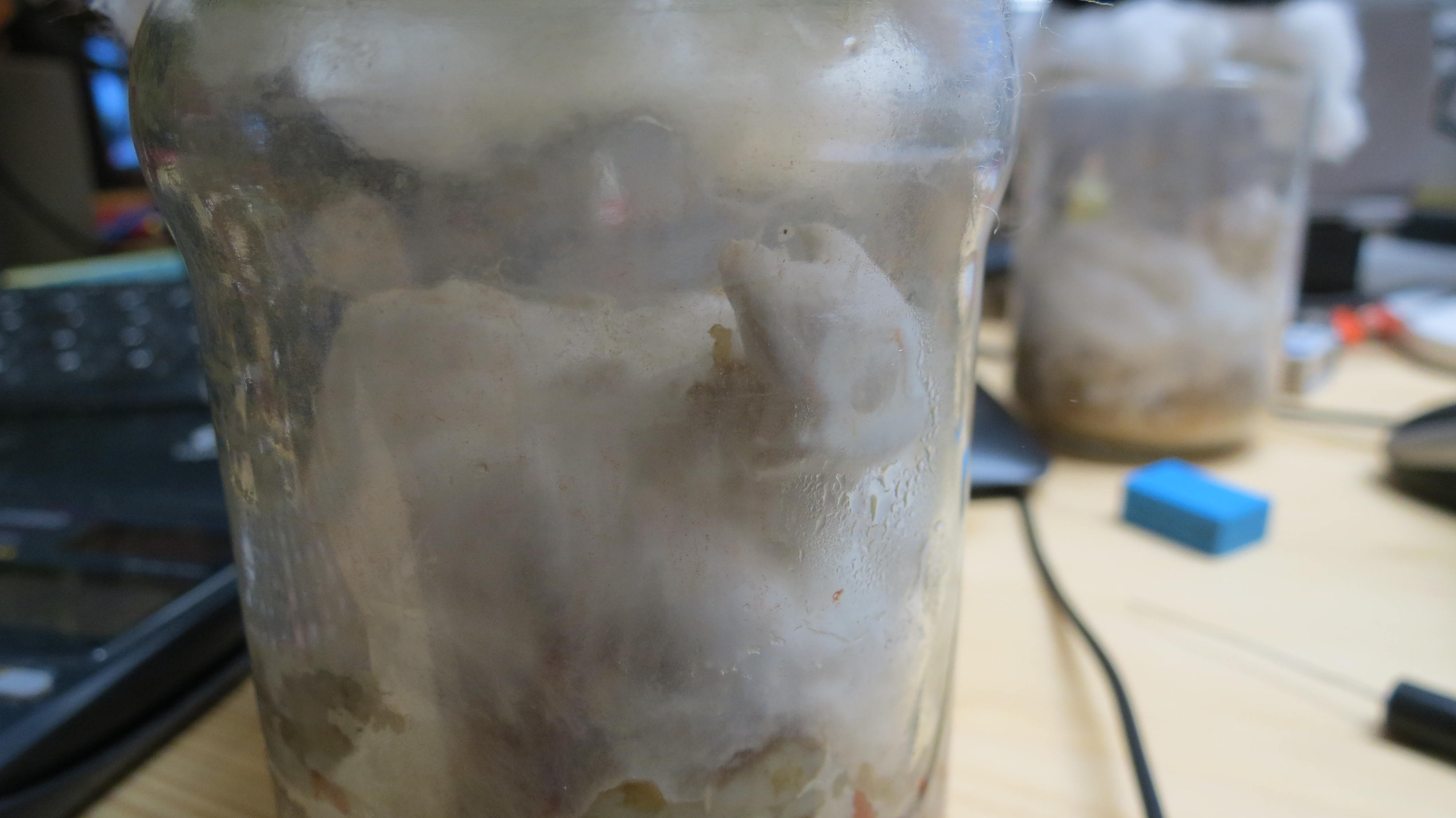 das seltsame ist, dass es auf einem Substrat fruchtet und gedeiht, was ich eigentlich schon fast beim Beimpfen weggeschmissen habe/hätte. Habe Haferflocken eingeweicht und als Substrat verwendet. Ergab eine sehr feste Masse.