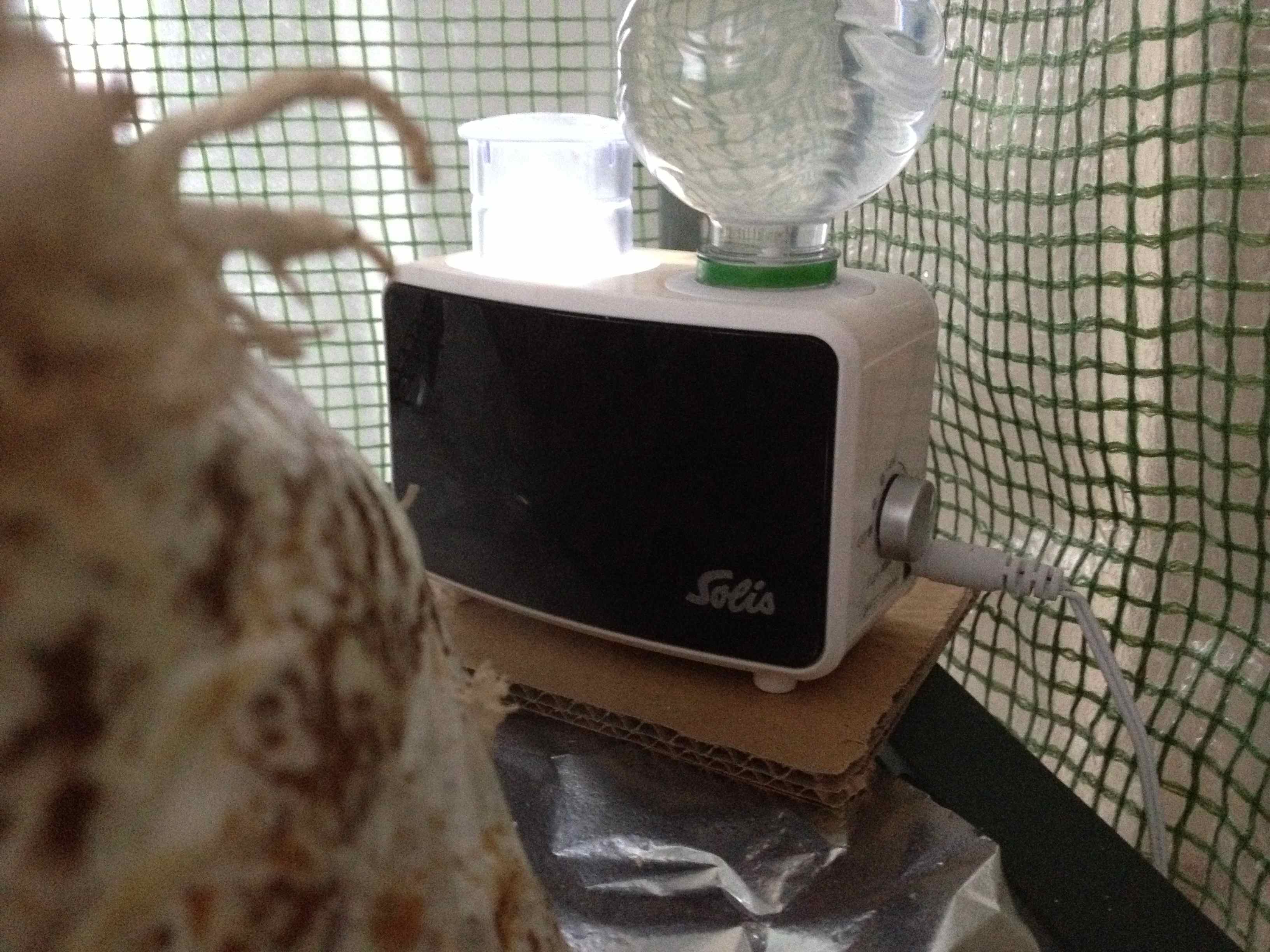 Ich habe mir für mein "Fruchtungs-Regal" einen Luftbefeuchter besorgt (siehe Foto).