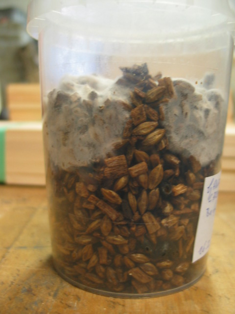 Die obere Kultur in den Bildern enthält nur Buchenspäne, die untere ist eine Mischung aus Buche, Gerste und Bierhefe.