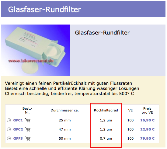 Die Filter habe ich gesehen in dem Shop, aber die Durchlässigkeit ist viel zu hoch. Da kommen ja alle Sporen durch. Geht also nicht.