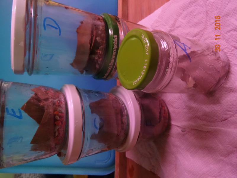Glas A und B hab ich nur mit Pappe und Pilzstückchen befüllt.