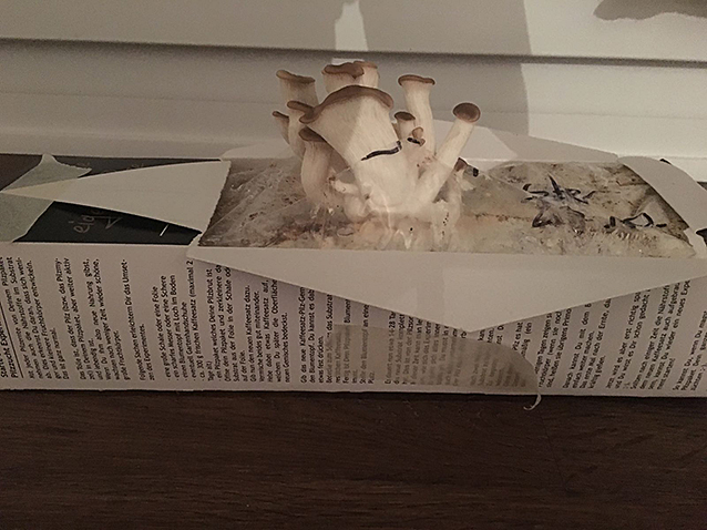 Die Austernpilze sind im Wachstum eher enttäuschend, sie haben die gleichen Bedingungen wie