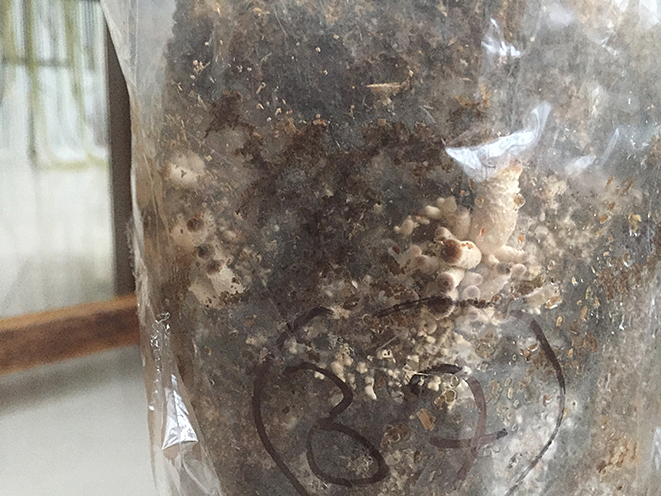 Ich habs mit Folie eigepackt, damit es die Pilzchen schön dunkel haben. :)