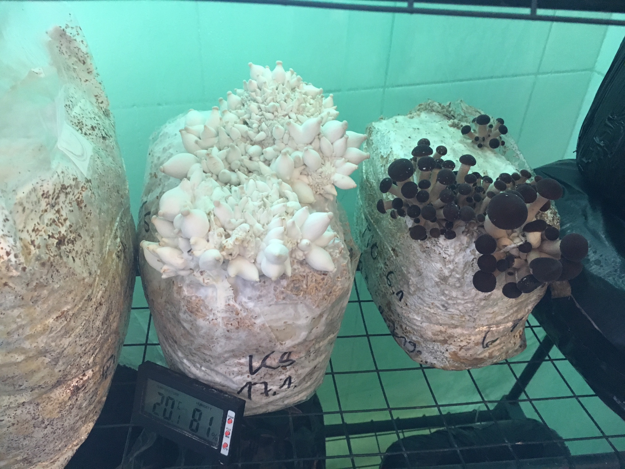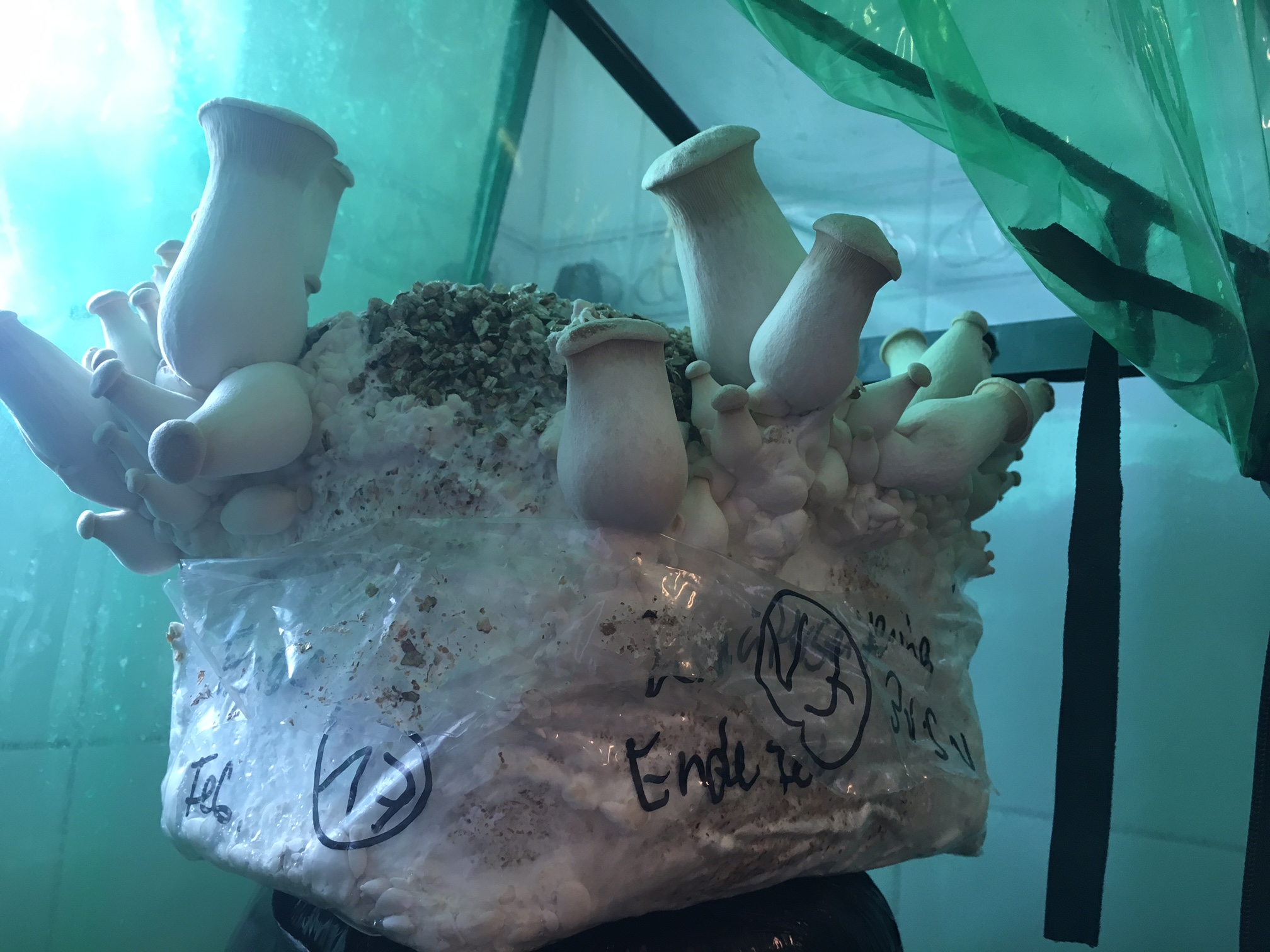 Das sind meine ersten Kräutereitlinge, die bei mir wachsen. Alle Versuche bisher auf Buche und Stroh sind nichts geworden. Irgendwann sind die Blöcke dann dem Schimmel zum Opfer gefallen.