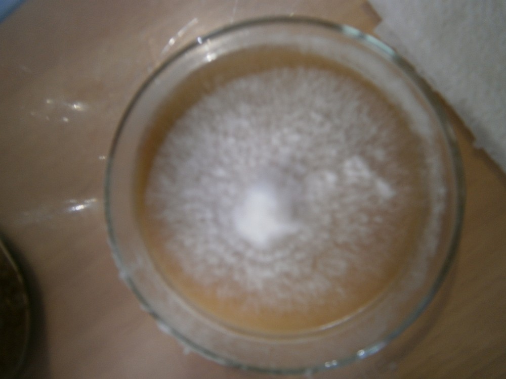 - die Agarlösung wurde mit etwas (2-3 Spatelspitzen) Zitronensäure auf ca. pH 4 angesäuert (um später Bakterienkontis zu reduzieren)
