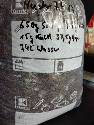 Das sind Holzpellets 650g in Verbindung mit Kokosphasern 310g, ich bin bei 15g Kalk ( Eierschale) und 37,5g Gips geblieben. DAs ganze mit 3,4l gekochtem Wasser und ca. 350g Körnerbrut. Der Pilz ist aus dem Wannseewald, such hier wollt ich einfach mal schauen ob dat jet :D