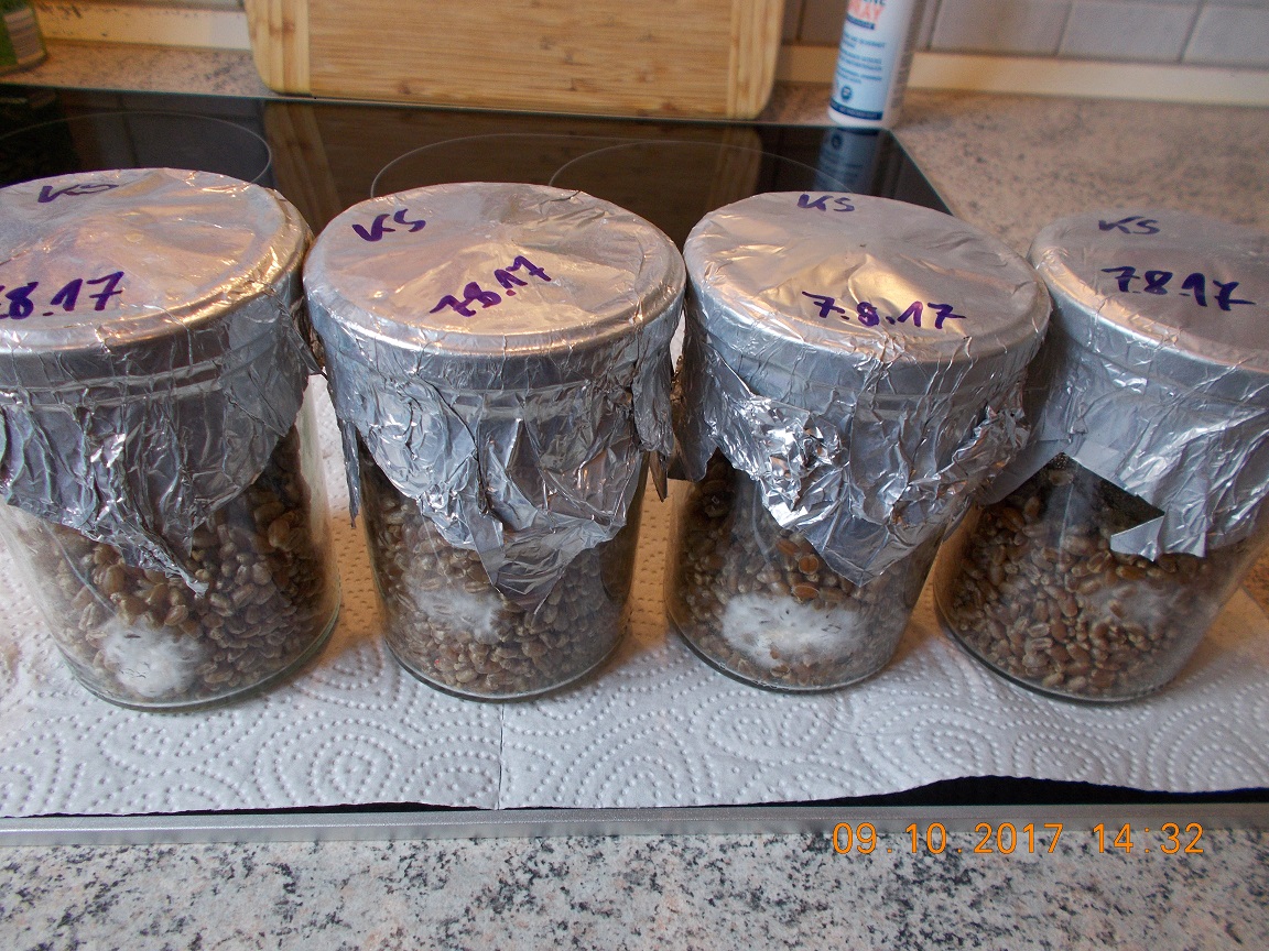 Ja, der Kräuterseitling wächst gut und schnell. Ich hab mal festgestellt, dass der auch im Kühlschrank noch enorm wächst. Gerade bei unsterilen Versuchen wäre es vielleicht sogar empfehlenswert, die Gläser in den Kühlschrank zu tun, da Kontis bei der verringerten Temperatur langsamer wachsen, der Kräuterseitling aber immer noch gut zu wachsen scheint. Müsste man mal ausprobieren.