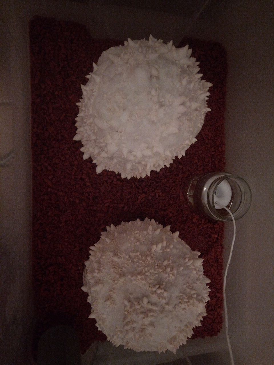 Die Kräuterseitlinge wollen mir offenbar ein Weihnachtsgeschenk machen - fruchten wie irre! :-) Aber trotzdem wächst auch wattemäßig so etwas Myzel drüber - sicher hab ich wieder was falsch gemacht..?