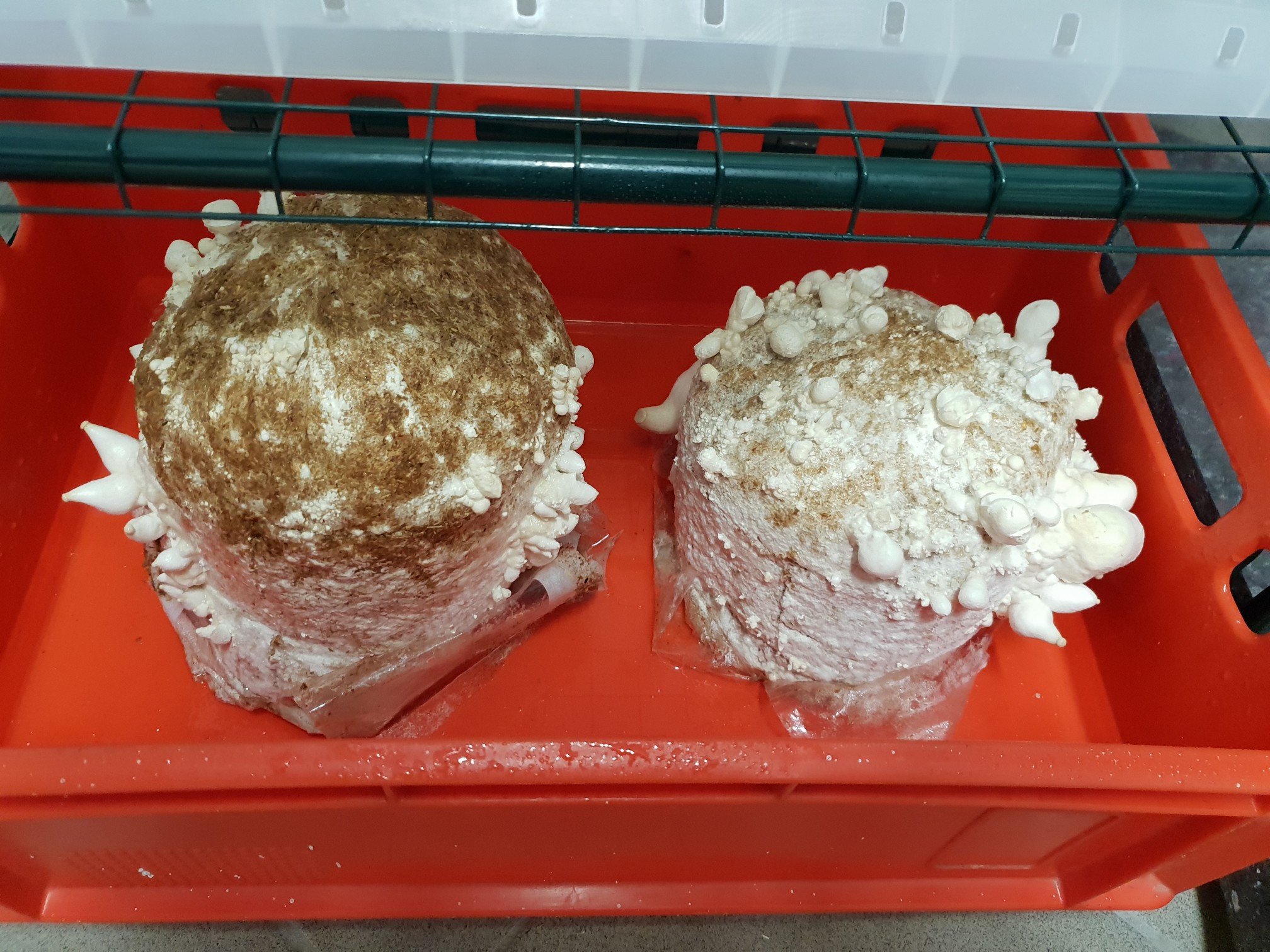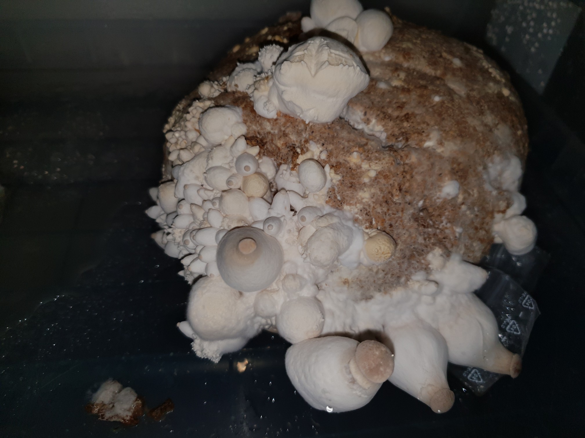 ach mal abgewartet und langsambilden sich neben an kleine Mini pilze die auch herran reifen nun sind auf meinen substratblock kleine und grosse KS mit Knollen .