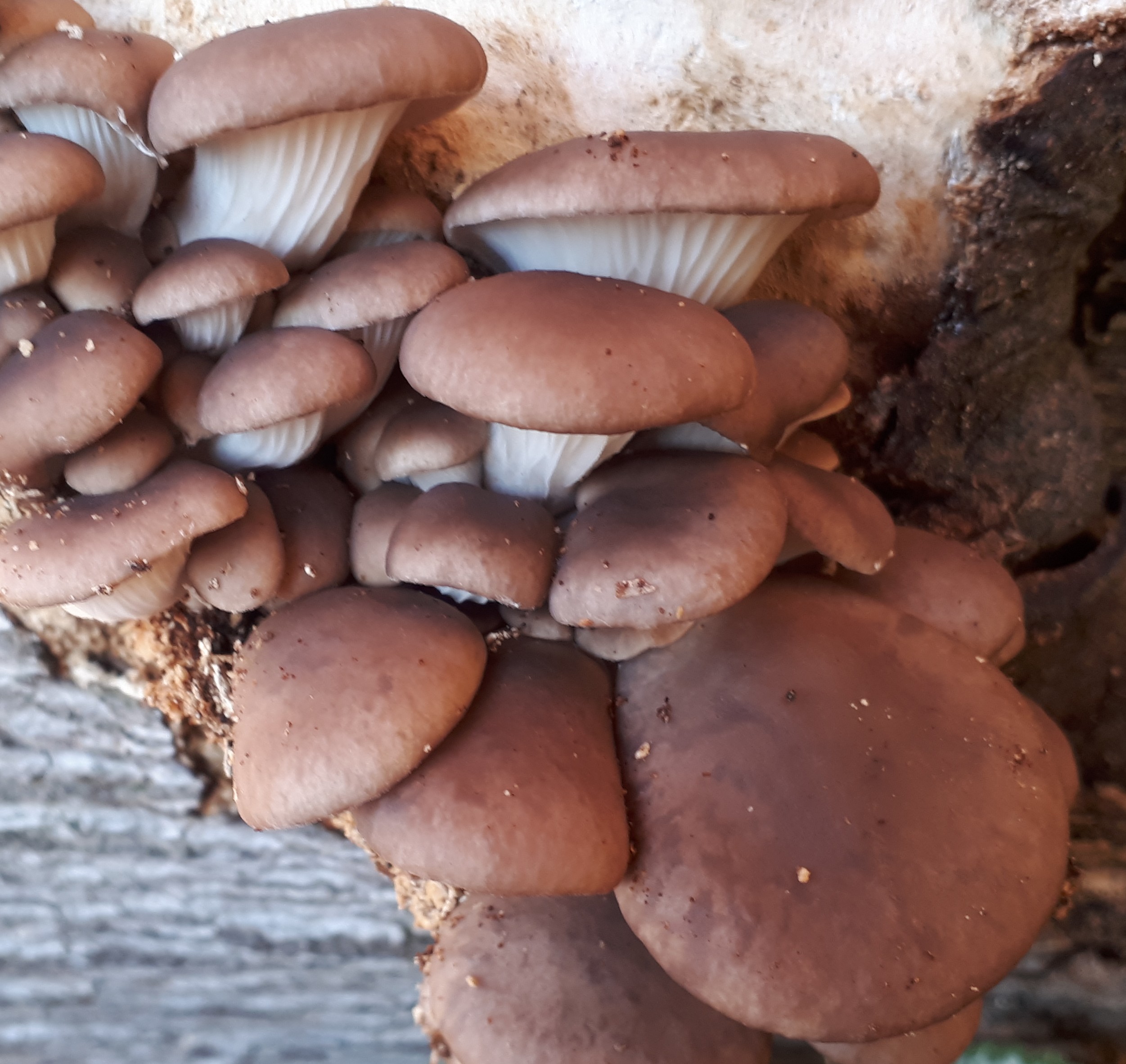 ein Seitling will aus Löchern rauswachsen. Wenn du den Block nackt machst trocknet alles aus, da nützt auch eine hohe Luftfeuchtigkeit nichts.