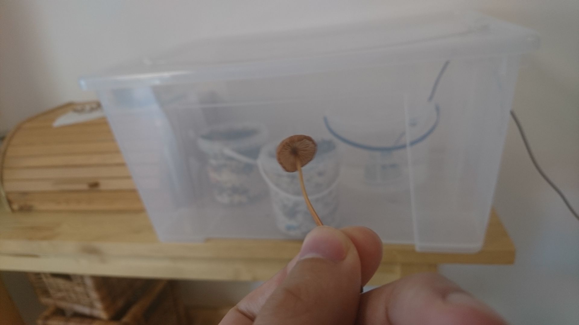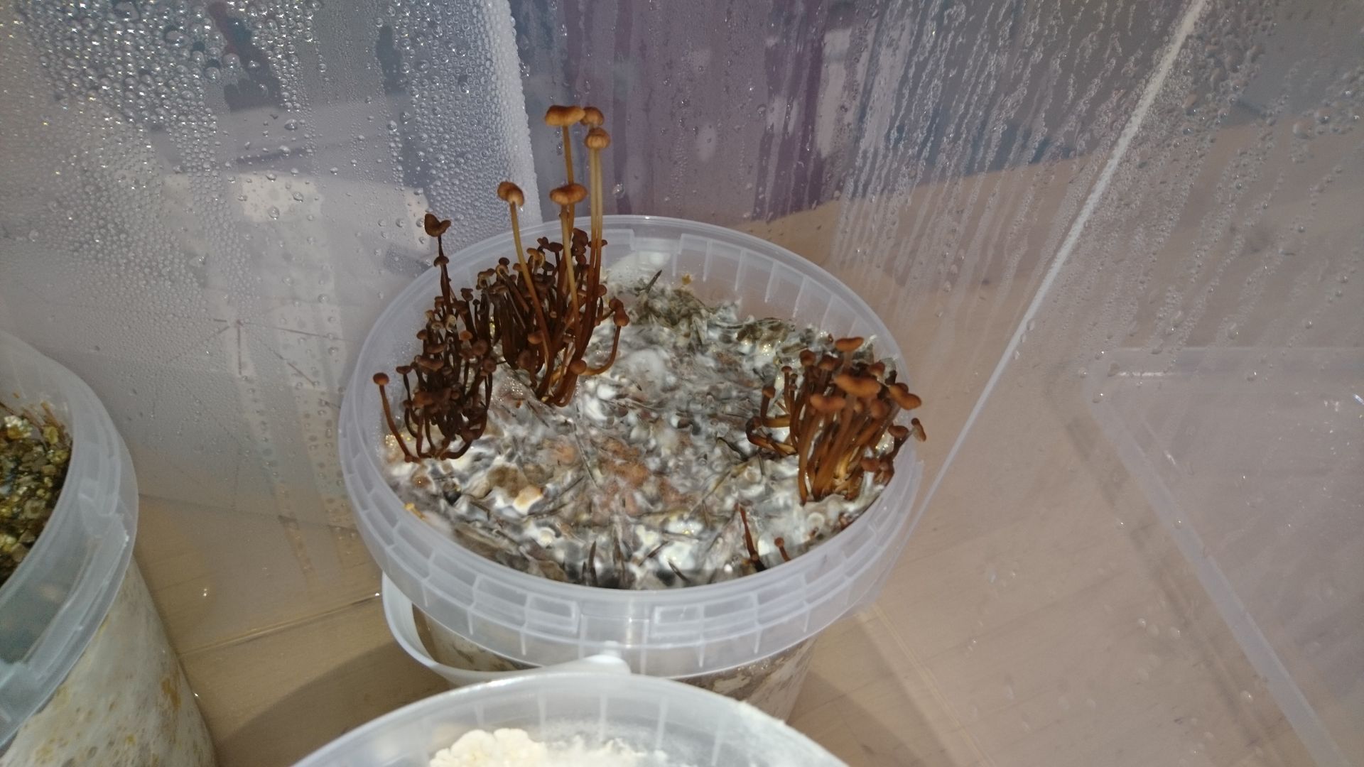 Habe festgestellt, dass obwohl die Luftfeucht so hoch ist, dass die Pilzchen teils matschig waren, das Myzel selbst sehr trocken war.
