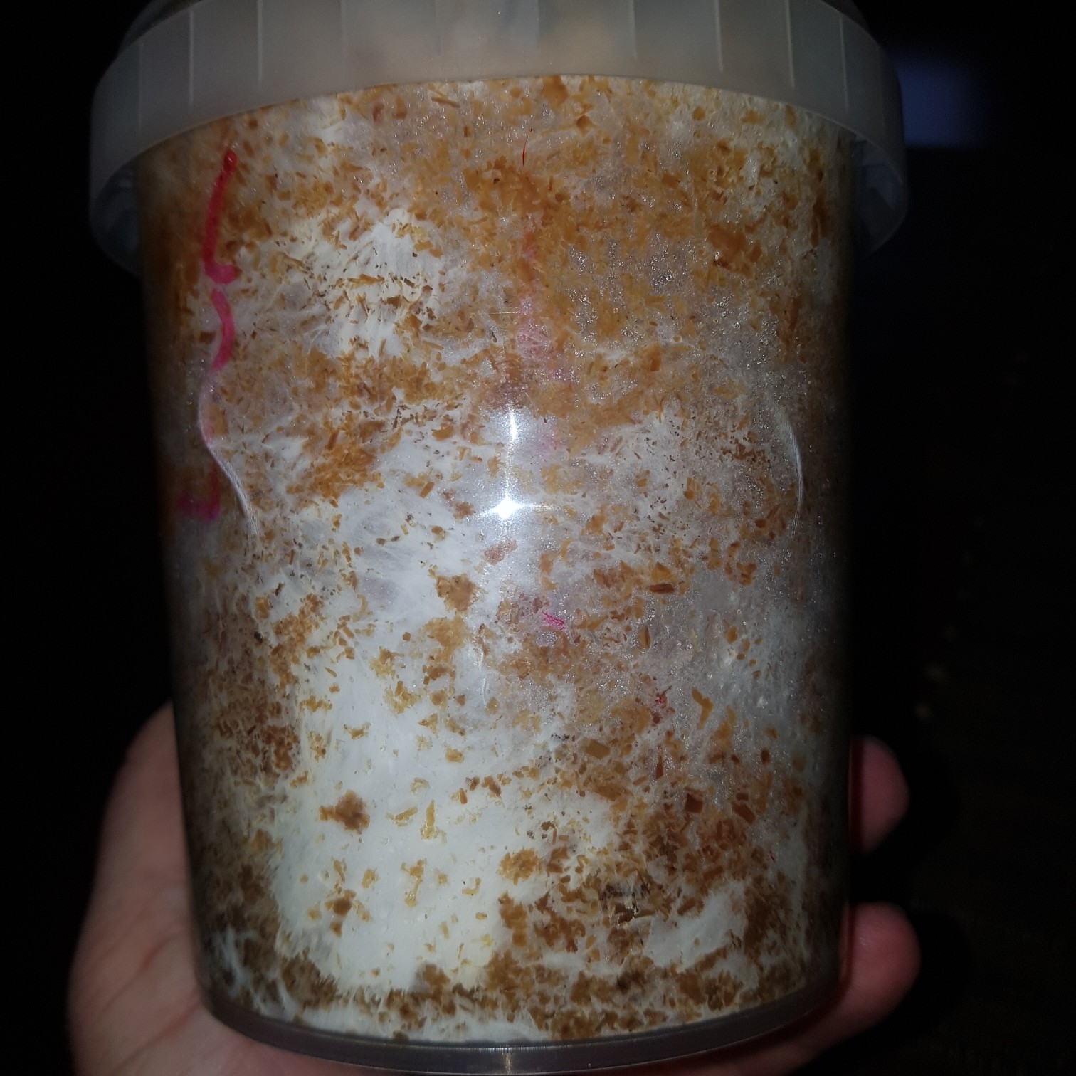ich habe ein paar stämme mit lungenseitling beimpft für den garten und dachte ich packe mal 1 dübel in strohpellets mit ner messerspitze gips und guck mal ob ich auch so einen schönen becher wie ihr hier hinbekomme.
