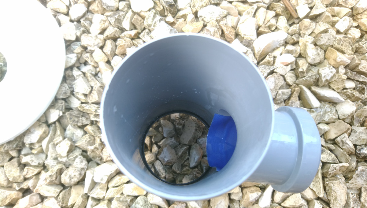 -Aus dem Muffenstopfen wird der Deckel herausgetrennt, der Stopfen dient nur als Befestigung des DN 50 Rohrbogens an den Deckel vom Eimer.