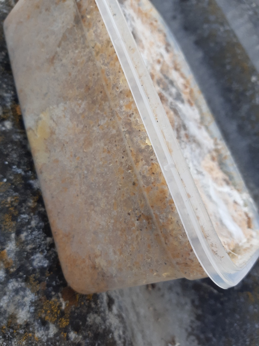 Das Substrat ist weiß durchwachsen und riecht 'frisch'.