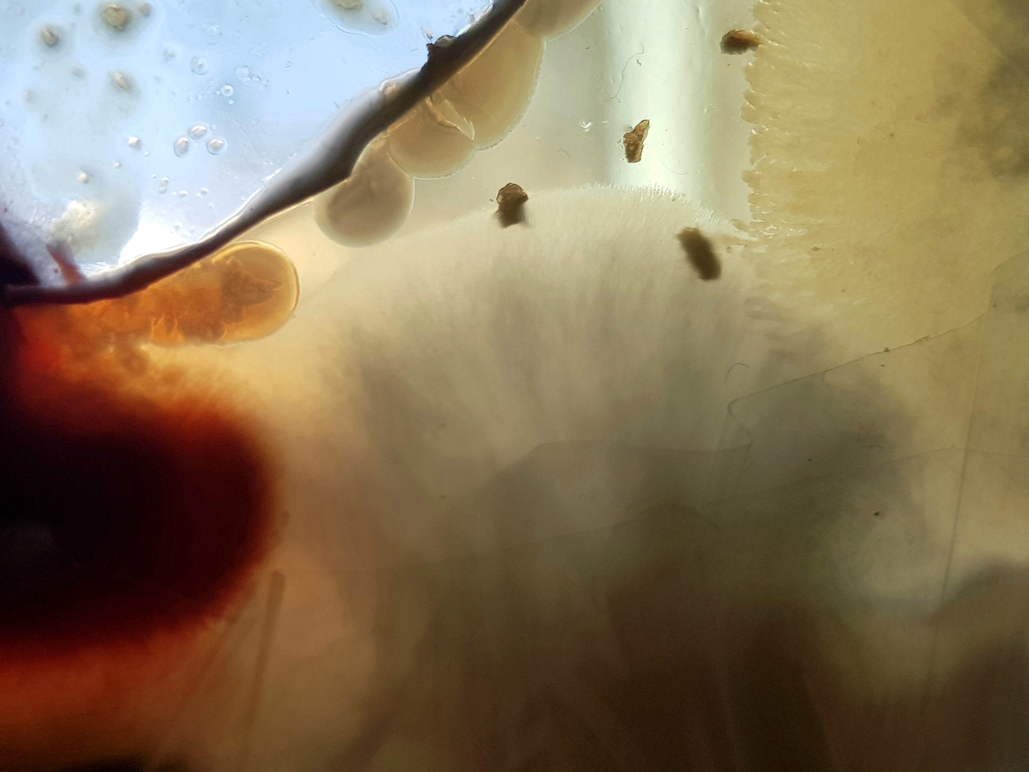 ist ja witzig, an dem Pilz versuche ich mich auch gerade und hatte gestern recherchiert, was für ein Myzel zu erwarten ist. Kurz gesagt, es sollte dem vom Klapperschwamm ähneln und eher langsam wachsen.