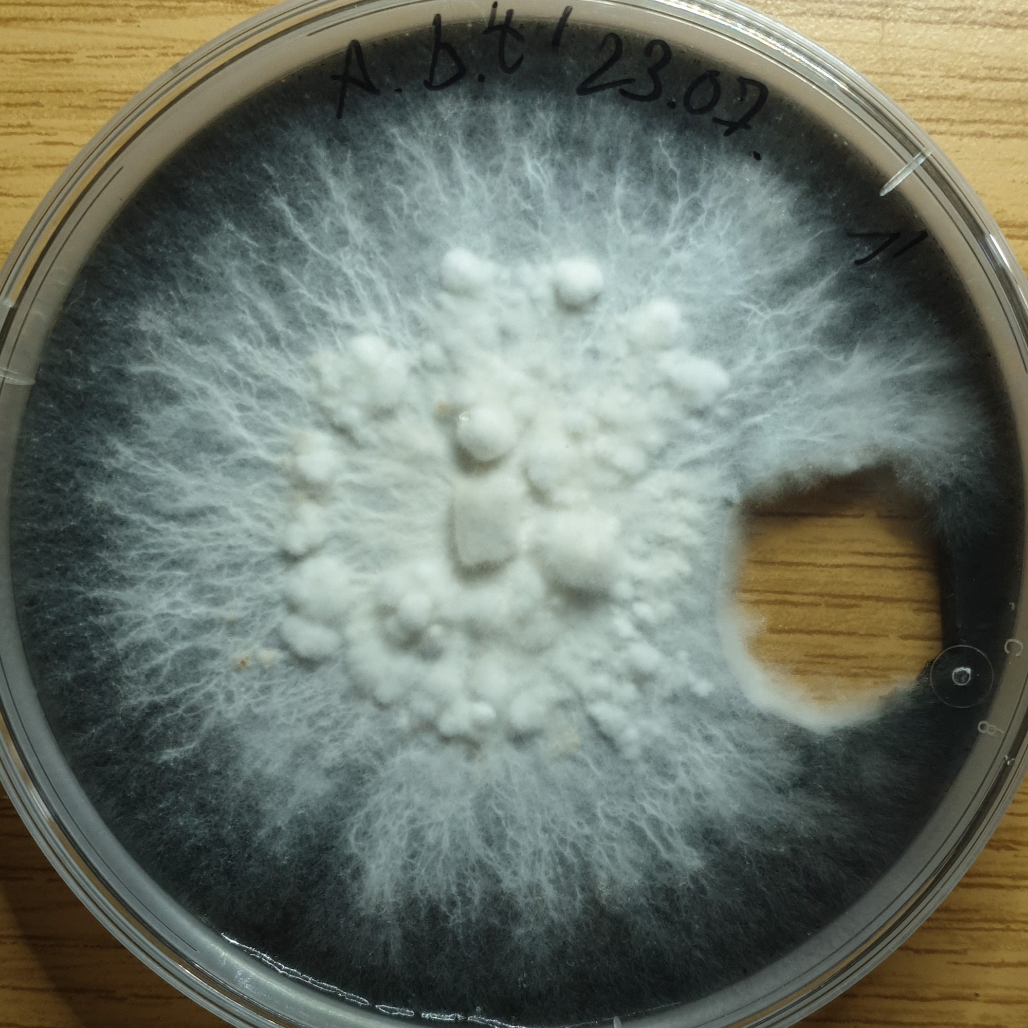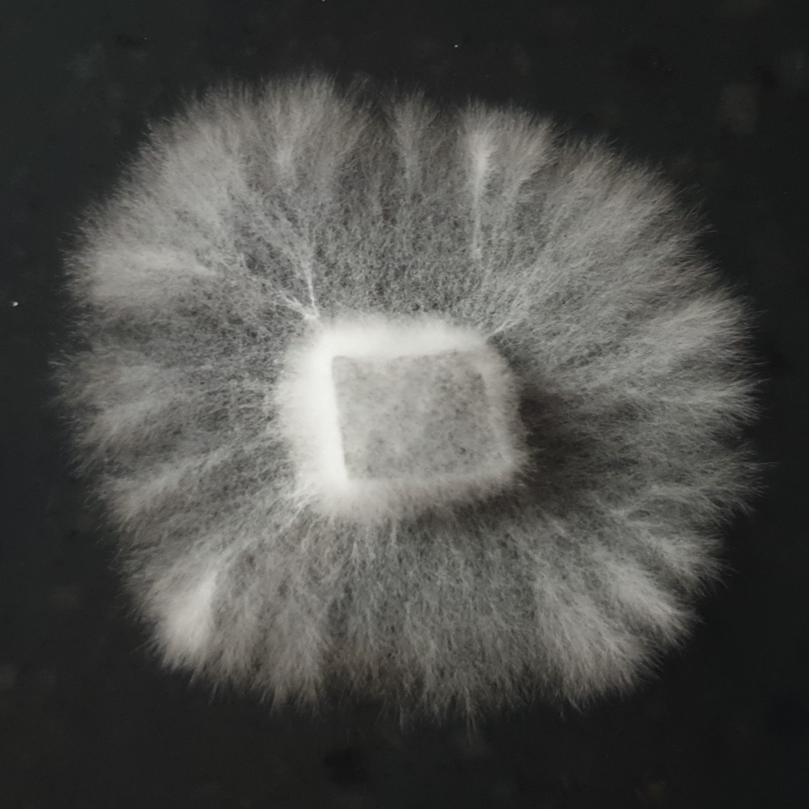 Ein aus Petri 1 überimpftes Agarstück nach acht Tagen: