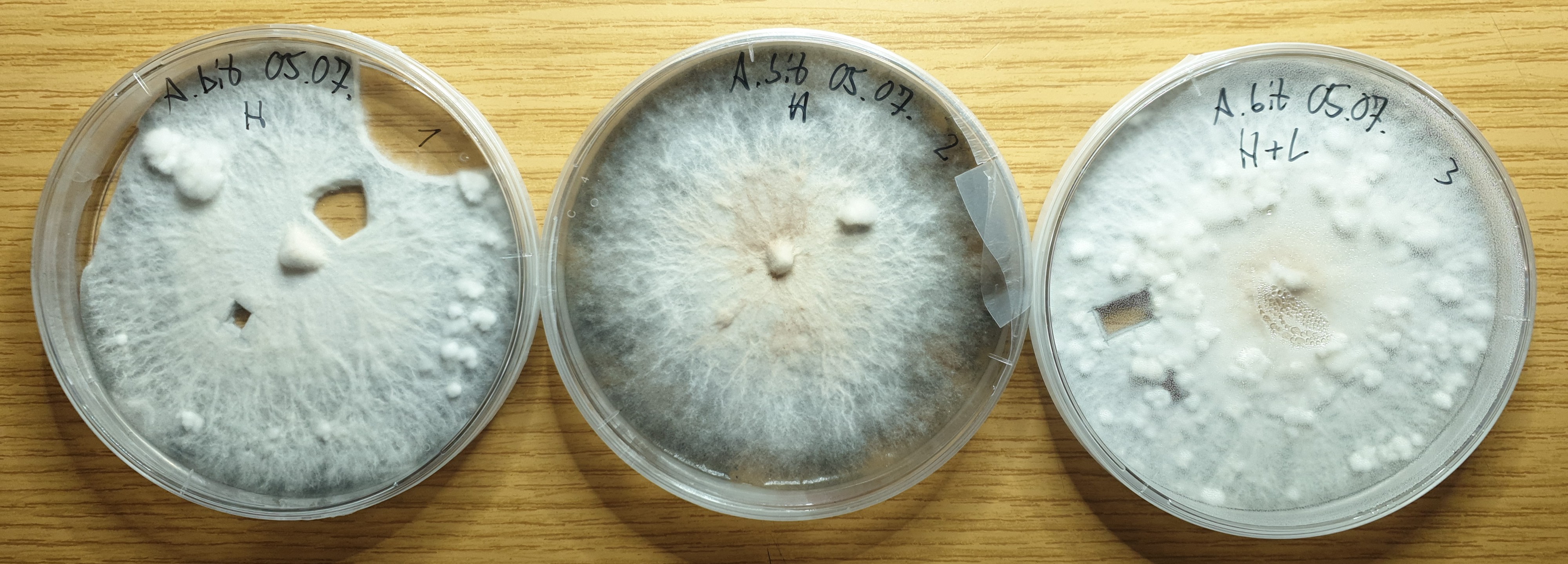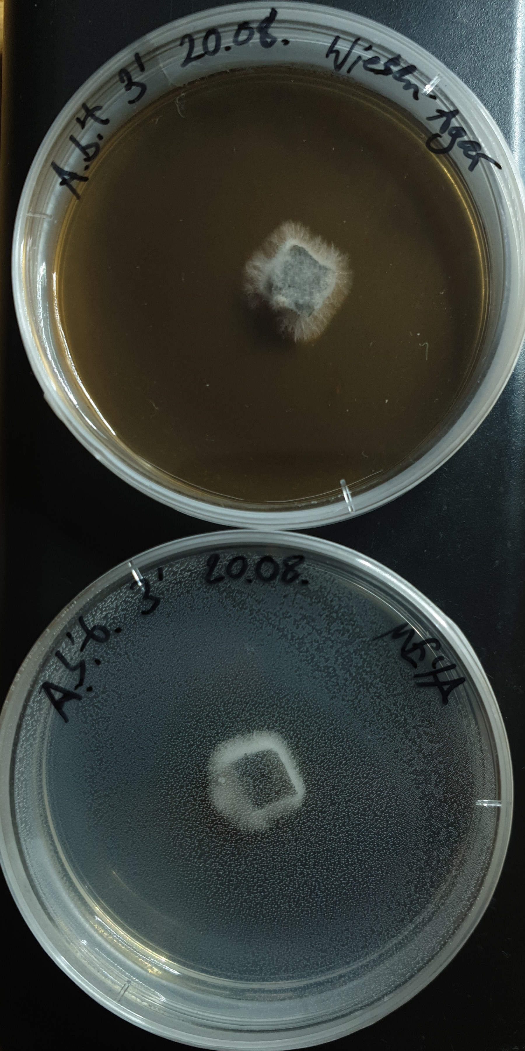 Vor ein paar Tagen habe ich Stücke aus Petri 3 auf drei verschiedene Nährböden übertragen.