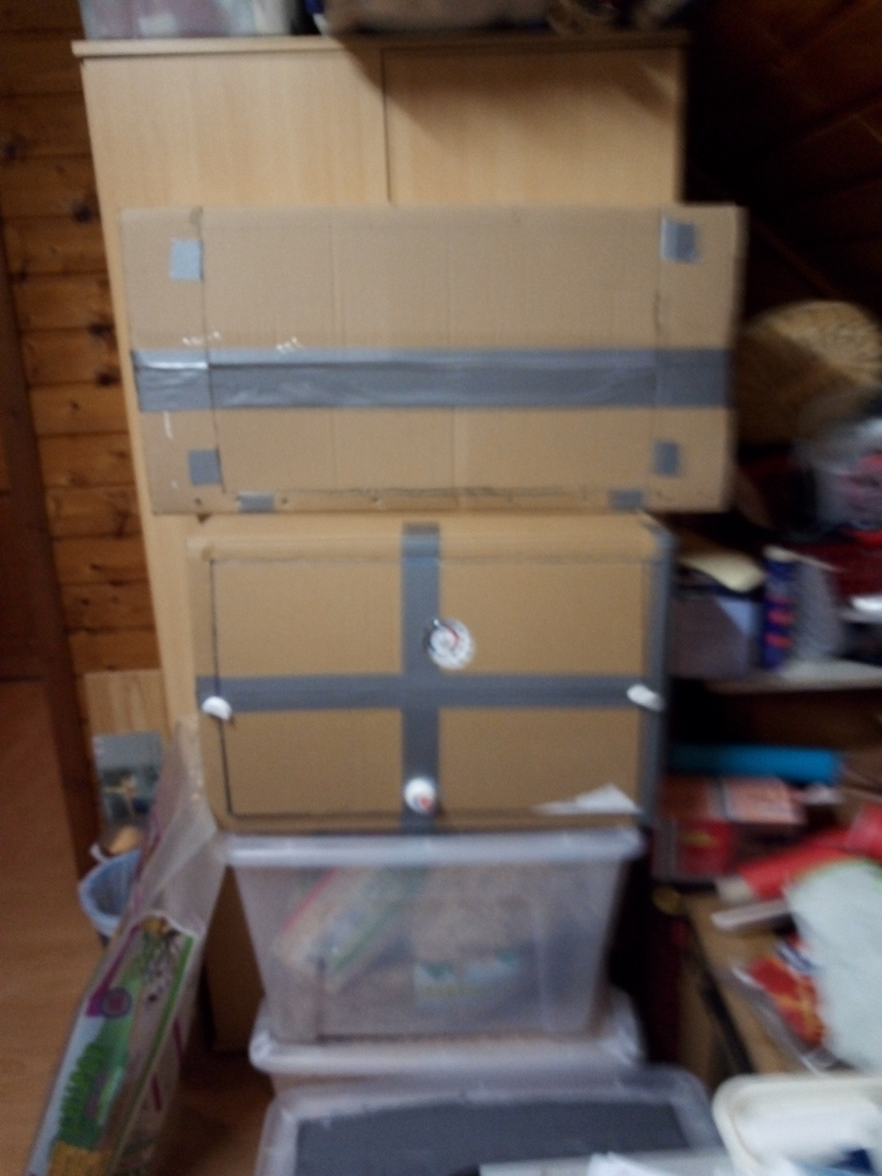 Also habe ich nochmal einen Karton drauf gestellt, reicht aber auch nicht mehr.