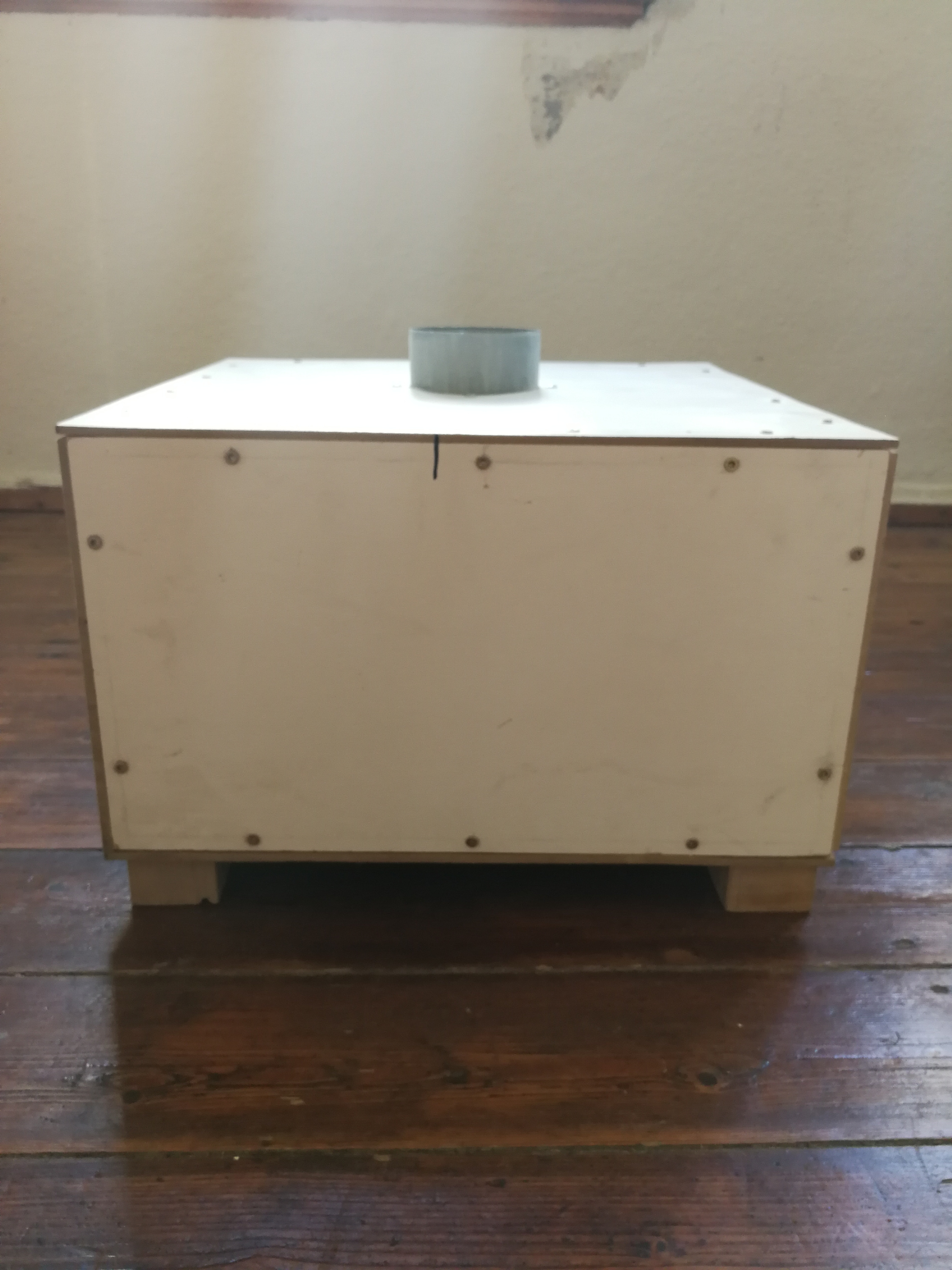 Falls der Volumenstrom noch im grünen Bereich ist, würde ich die Reinbank gerne so konzipieren. Der Bereich in dem man arbeitet wird auf einen Tisch gestellt, der Lüfter soll auf dem Boden stehen.