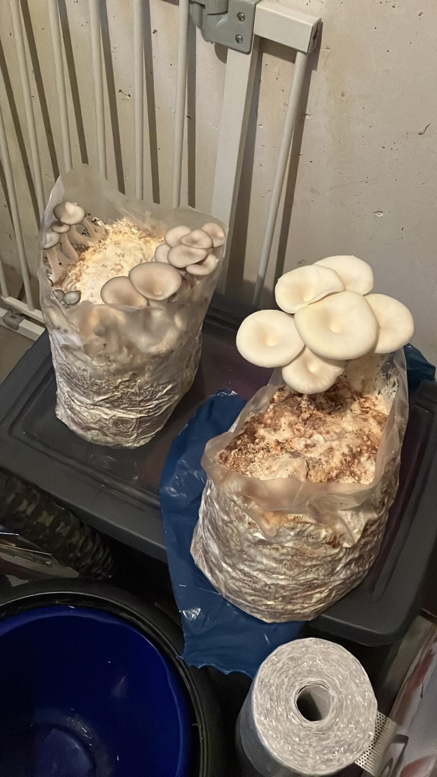 Nun habe ich jeweils einen Beutel Austerseitlinge und einen Beutel Limonenseitlinge auf dem Balkon und im Keller stehen.