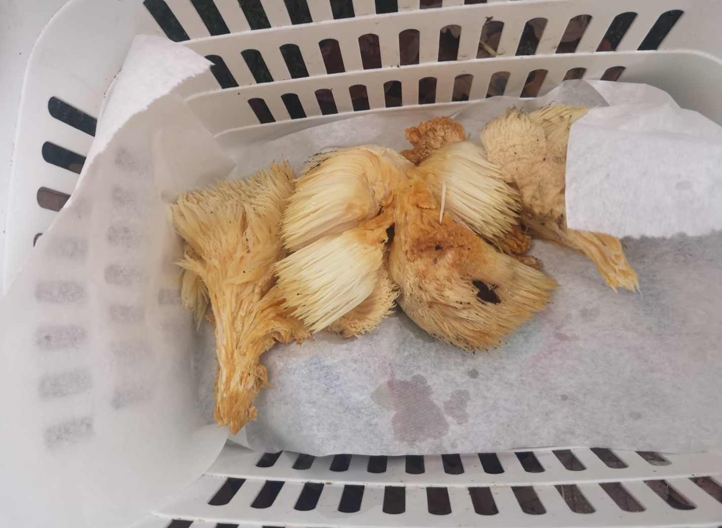 Ende Noveber 2022 wenige Tage vor dem ersten Frost hatte ich einen für mich unglaublichen Fund gemacht, in meinem Liebilngswald wo ich neben dieser Art schon sämtliche seltene Pilze finden konnte. Eigentlich ging es nochmal auf die Suche nach Totentrompeten und Semmelstoppelpilze, der Beste Fund war aber auf dem Rückweg - grade am Auto angekommen erspähte ich ein weißes Gebilde in ca. 5-6m Höhe an einer geschädigten Eiche, ein Igelstachelbart! Nur kamen wir leider nicht an den Fruchtkörper heran, so musste mein Vater ein paar Tage später kurz vor den ersten gemeldeten Frösten nochmal zur Ernte hin, ähnlich wie bei den Austernseitlingen wurde sich ein passendes Erntwerkzeug aus langen Stöcken gebastelt, am Ende eine Spachtel befestigt um den Pilz präzise entfernen zu können.