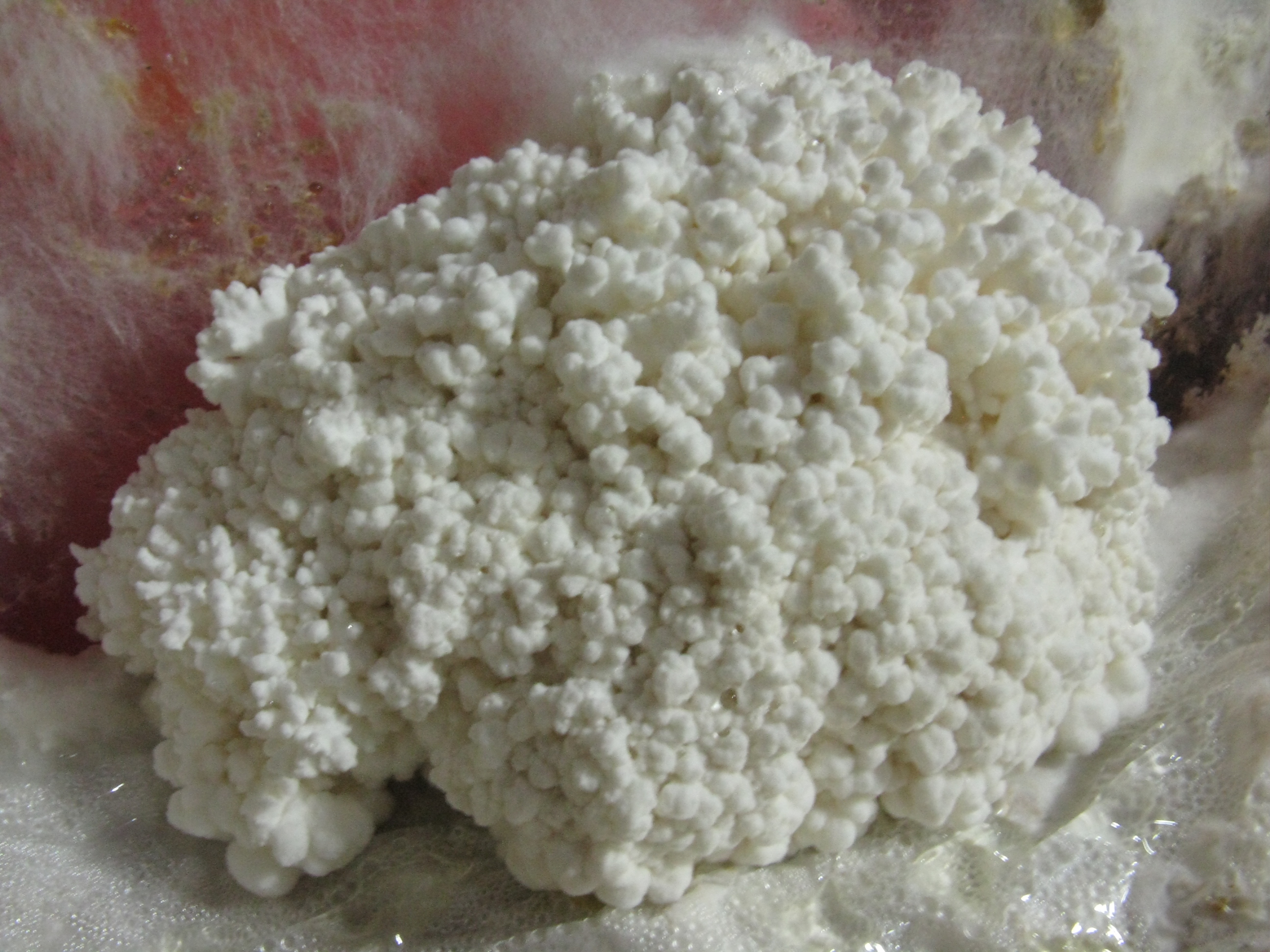 Hier nochmal ein Foto vom falschen Ulmenseitling bei Frischluftmangel, wenn sich die Primordien nicht zu Pilzen entwickeln können: Da ich das so weder von P. ostreatus noch von P. pulmonarius kenne, dachte ich an P. populinus, was aber auch nicht mehr als eine Vermutung ist.