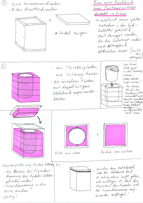 Die Erhitzung des trockenen Materials (bei Holzchips, Stroh oder Sägemehl) bei über 200 °C und die direkte Weiterverwendung mit Wasser und (viel) Körnerbrut, die im Artikel erwähnt wurde fande ich auch interessant, werde ich aber vorerst nicht weiter verfolgen.
