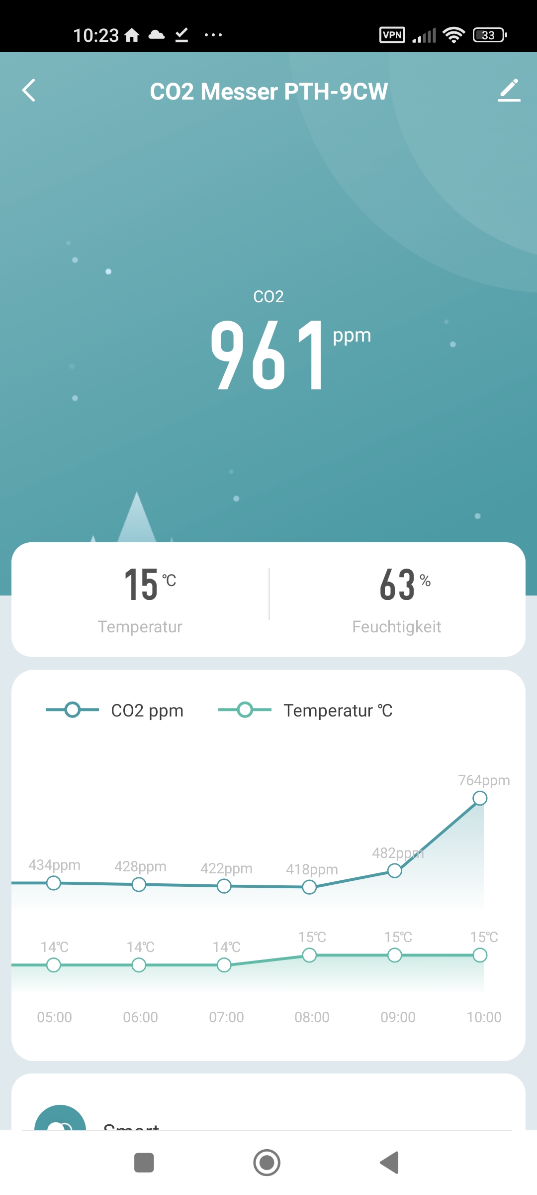 Ich verstehe gar nicht so recht, was das Problem von 660ppm CO2 sind. Du kannst das Messgerät ja mal in die Wohnung nehmen. Da hast du 15 Minuten nach dem Lüften den gleichen Wert. Bei uns im Schlafzimmer. Etwa 20qm, fast 4m hohe Decken. 2 Erwachsene, ein Kind sind trotz ausgiebigem Lüften in den frühen Morgenstunden die Werte auf über 1200ppm geklettert.