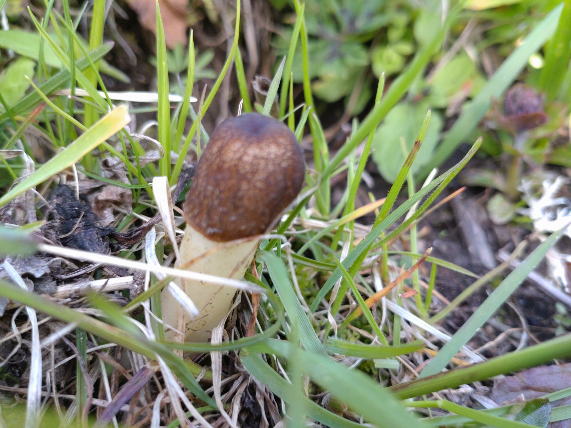 Eine junge Böhmische Verpel (Verpa bohemica), oft als minderwertig abgetan, meiner Meinung jedoch ein sehr guter Speisepilz der mit den Morcheln locker mithalten kann.