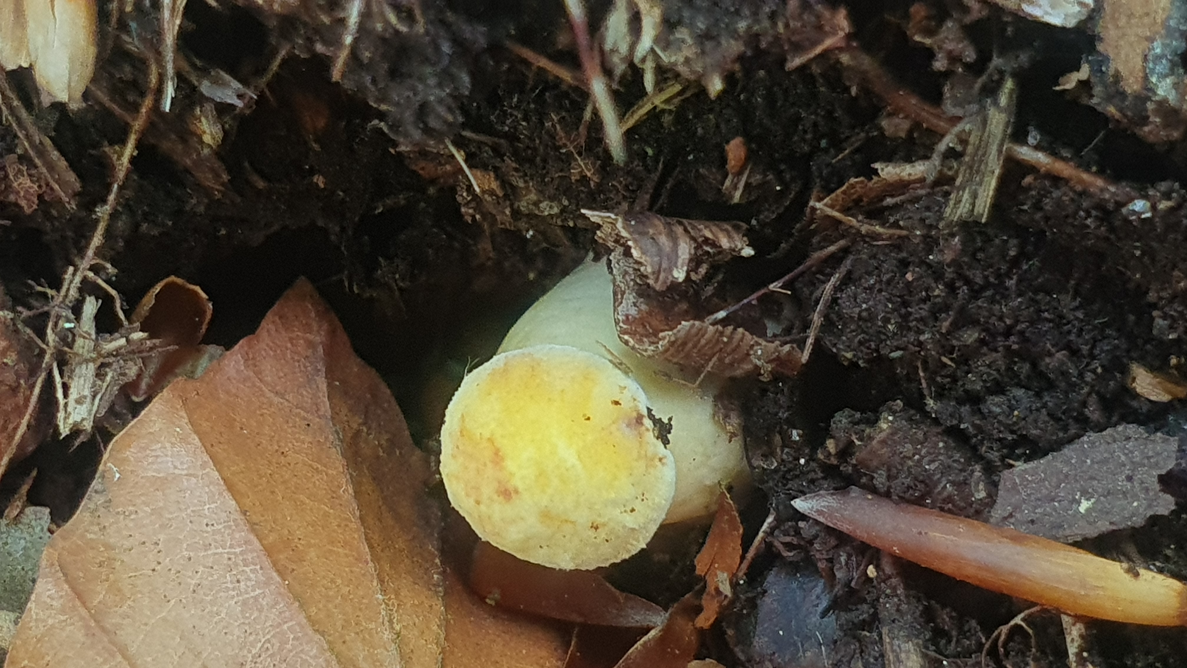 Und hier die Fingerhutverpel, sie kommt deutlich später, ist allgemein kleinerbleibemd und weist einen glatten, allenfalls schwach gerunzelten Hut auf. Diesen Pilz finde ich gerne im dichten Gestrüpp unter Schlehe, Hartriegel, Weißdorn aber nun auch unter Pappel zwischen denen ein paar wenig dieser Sträucher wachsen mitten im Habitat der Böhmischen Verpel.