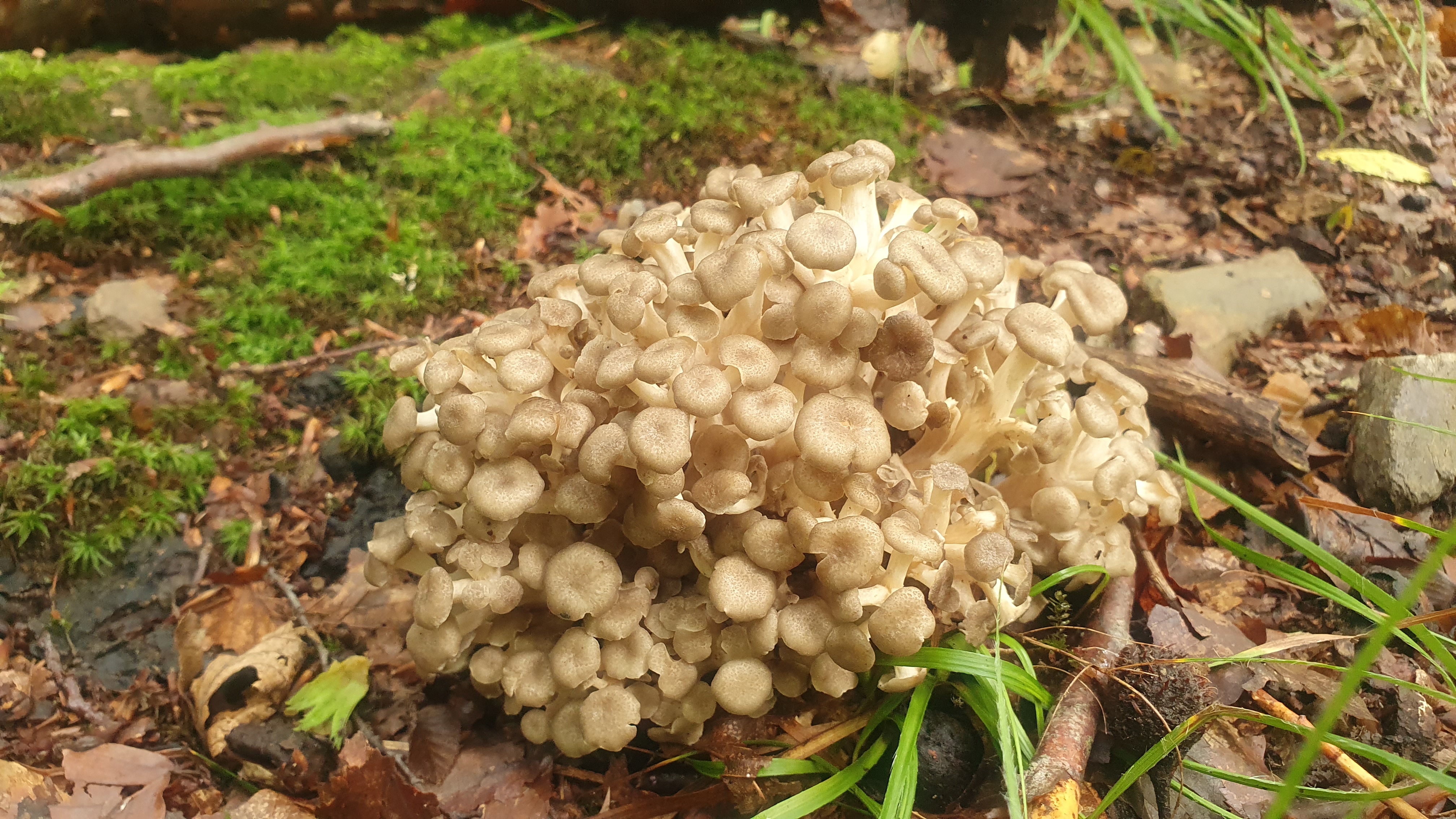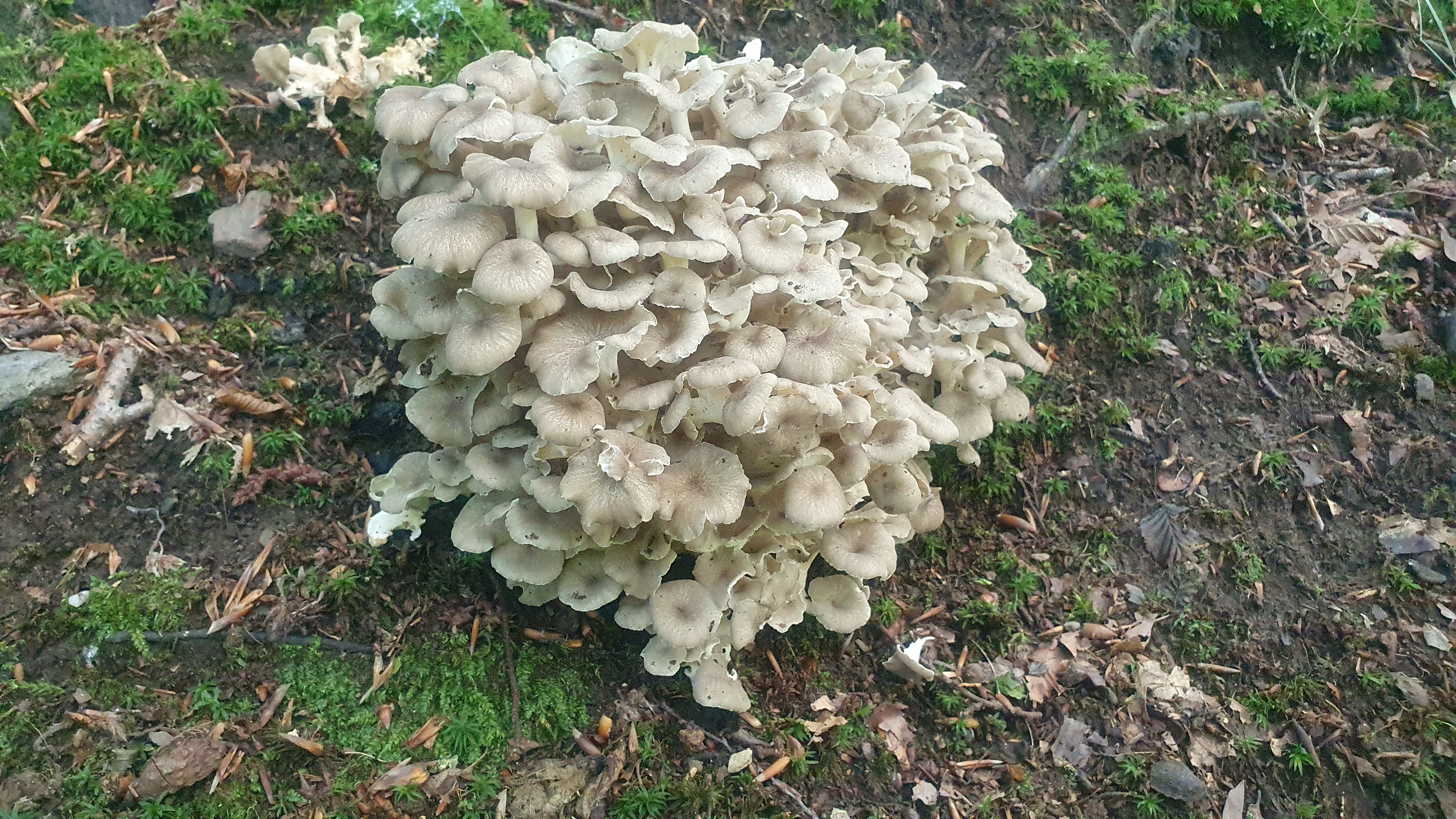 Auch die Hasen - Eichhasen (Polyporus umbellatus) lassen sich blicken und scheinen dieses Jahr ein fabelhaftes Jahr zu haben. Aus ihren schwarz melanisierten, verzweigten Sklerotien, welche mancherorts aus dem Boden schauen bildet er seine Fruchtkörper die teilweise eine beachtliche Größe erreichen können.