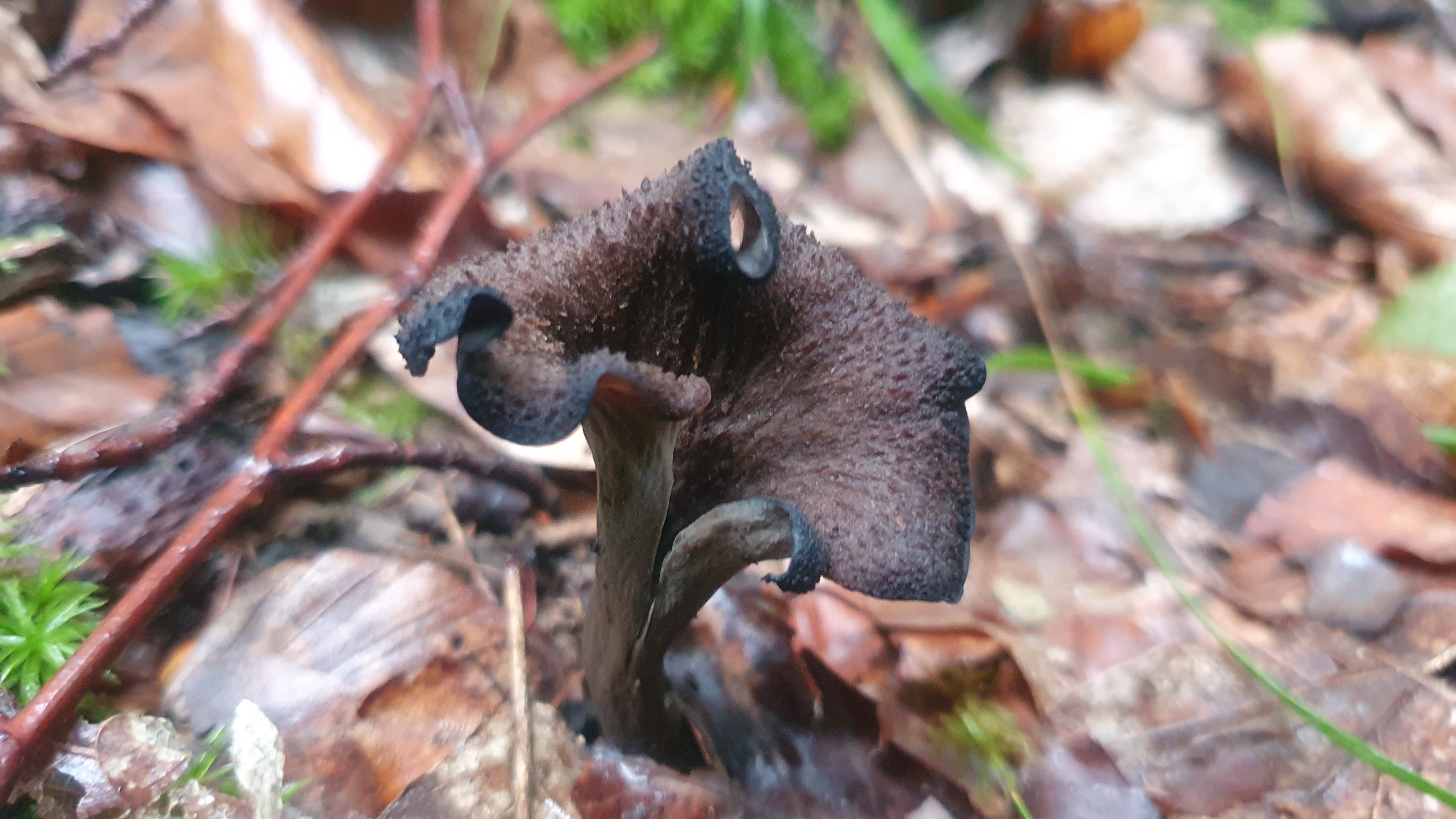 Dieses Jahr war es viel zu einfach, kein langes Suchen schon standen sie da, aber trotzdem war die Freude riesig über einen meiner Lieblingspilze, die Totentrompete (Craterellus cornucopioides), ein Mykorrhizapilz, welchen man überwiegend unter Laubgehölzen (Buche) finden kann, seltener bei Nadelgehölzen. Er bevorzugt Standorte mit Basenhaltigen Ausgangssubstraten für die Bodenbildung, und wächst gerne in der Naturverjüngung mit Altbäumen dazwischen aber auch im Hochwald, etc. kann man fündig werden.