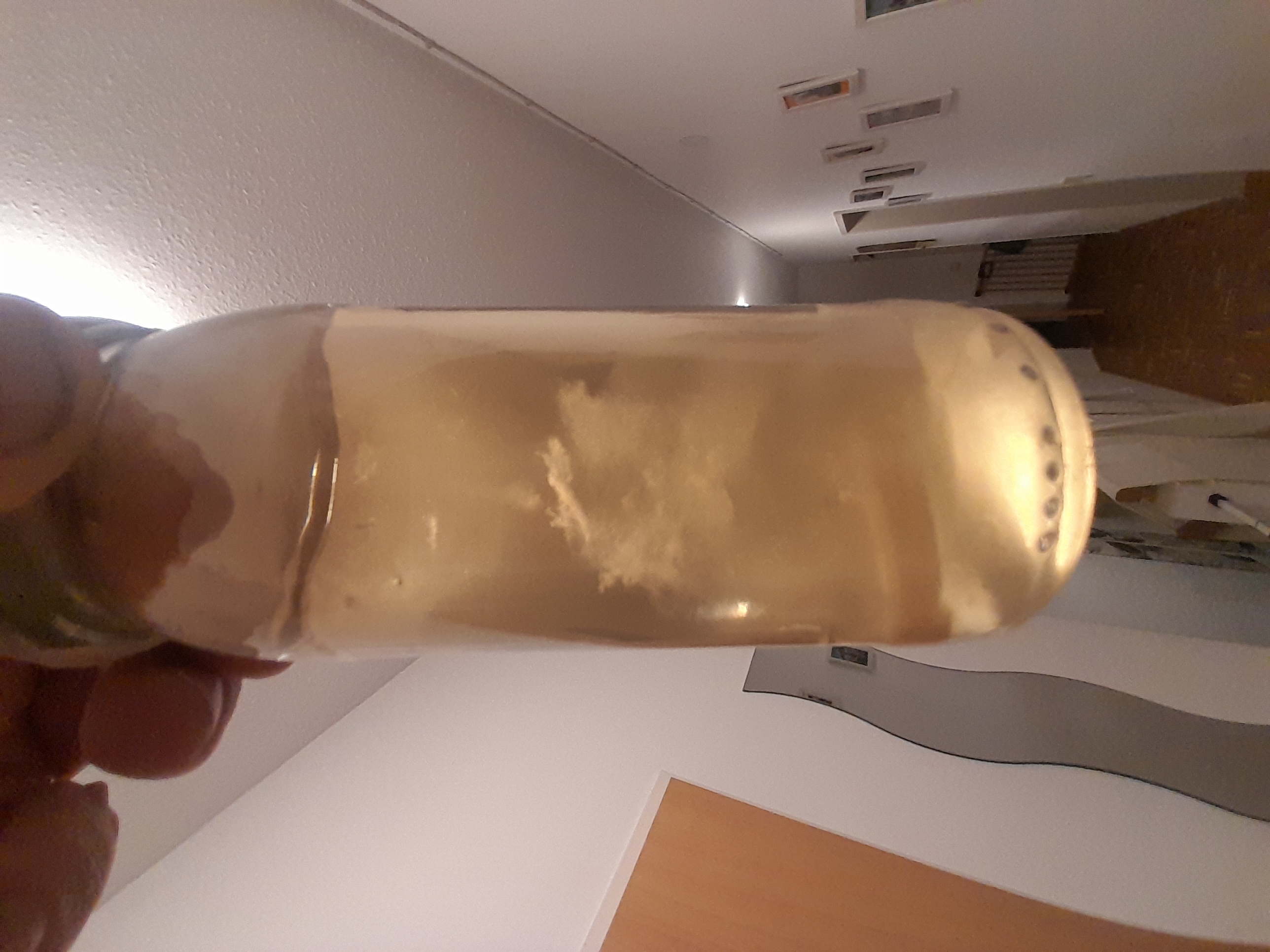 Von 5 Petris ist nur 1ne etwas geworden. Daraus hab ich 3 Gläser Körnerbrut hergestellt , wobei 1nes davon Auffälligkeiten gezeigt hat (Konti). Zusätzlich hab ich noch 3 Gläser Flüssigkultur angelegt.