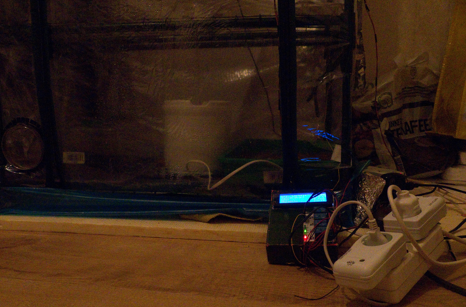 Ich werde meinem Foliengewächshaus vermutlich noch irgendwann einen Überzieher aus Malerfilz nähen, um kein Außenlicht dran zu lassen und gegen Wärmeverlust zu isolieren (was eigentlich nicht nötig ist und Kühlen tue ich bislang ja noch nicht. Obwohl.... ich hab ein Peltier-Element hier, ich sollte das mal ausprobieren. Aber das eine wird allenfalls 2-3 K Differenz schaffen können, wenn man Glück hat - vermute ich.