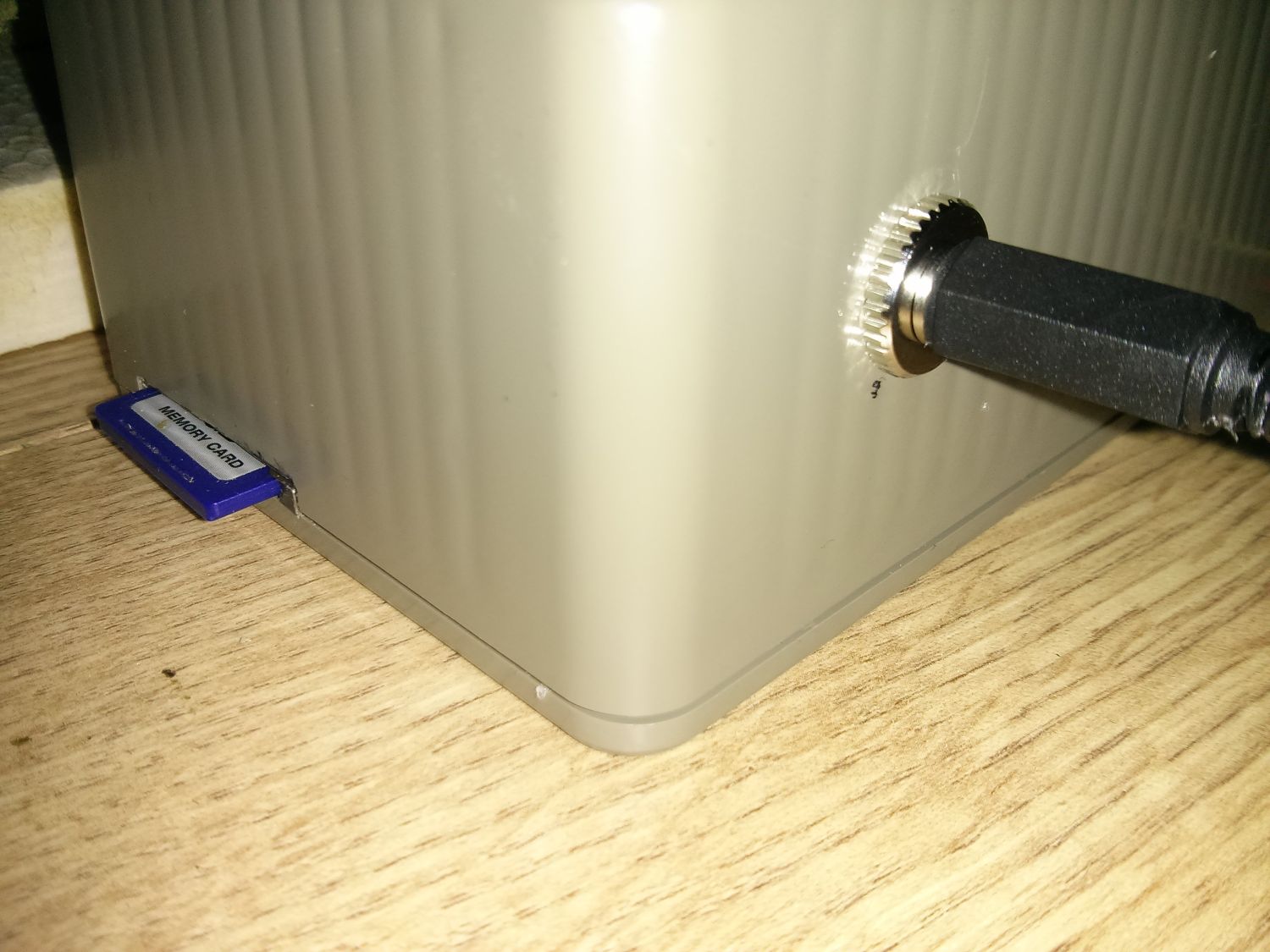 Zu sieht es deutlich aufgeräumter aus. Hier sieht man den Anschluss 12 V und die SD-Karte: